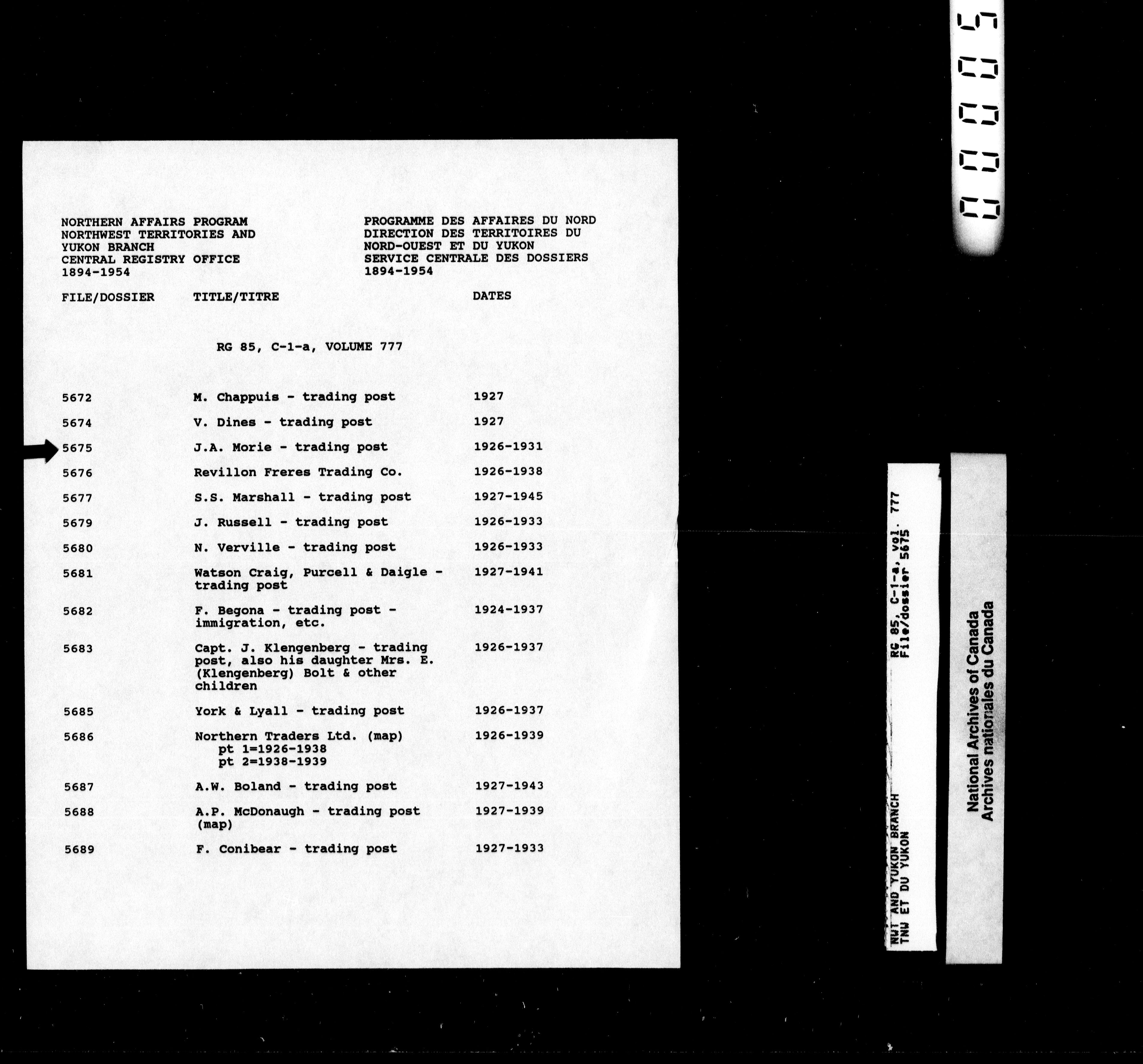Department of Indian Affairs : Northwest Territories and Yukon Branch, Central Registry files - 13283