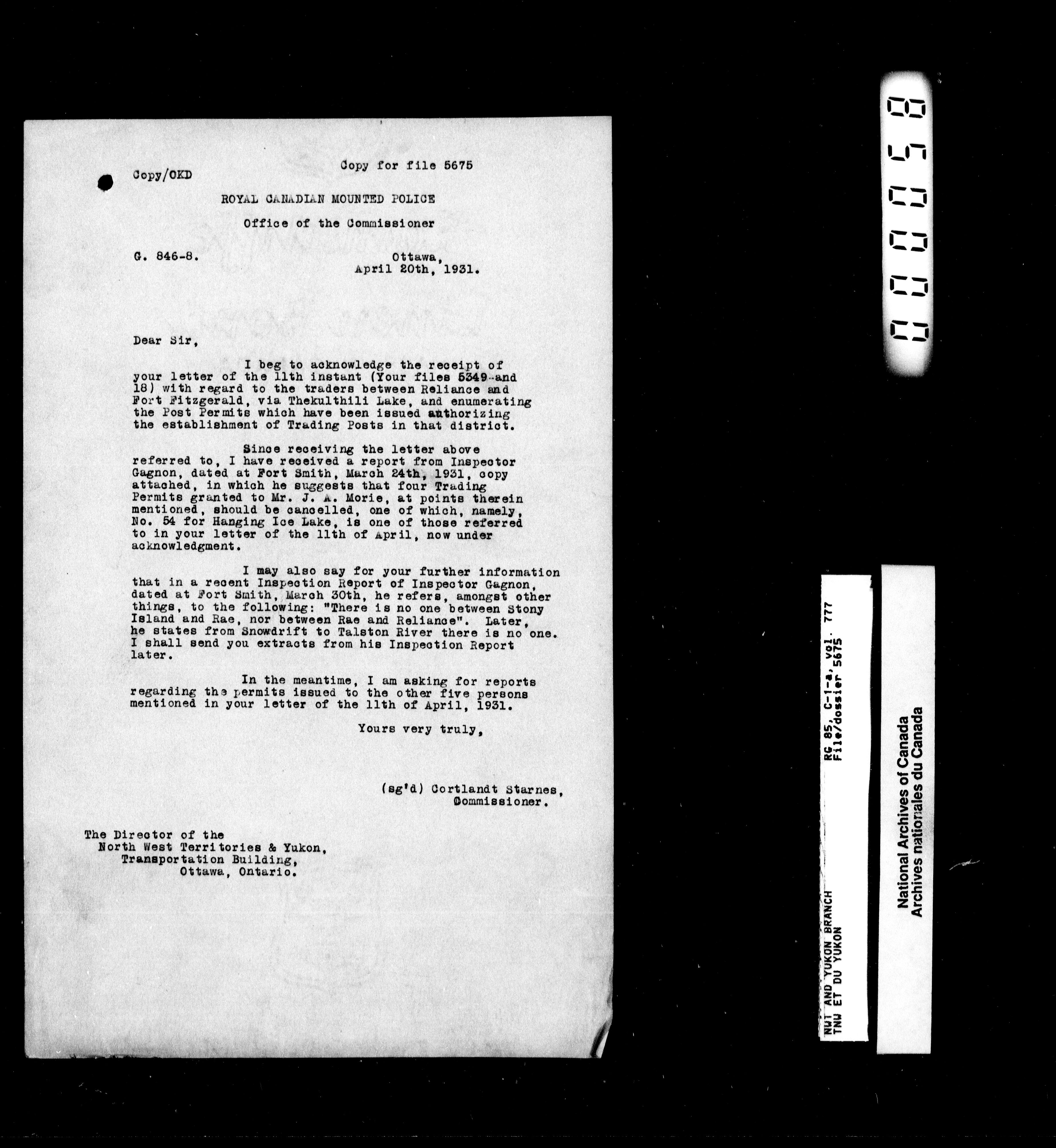 Department of Indian Affairs : Northwest Territories and Yukon Branch, Central Registry files - 13283