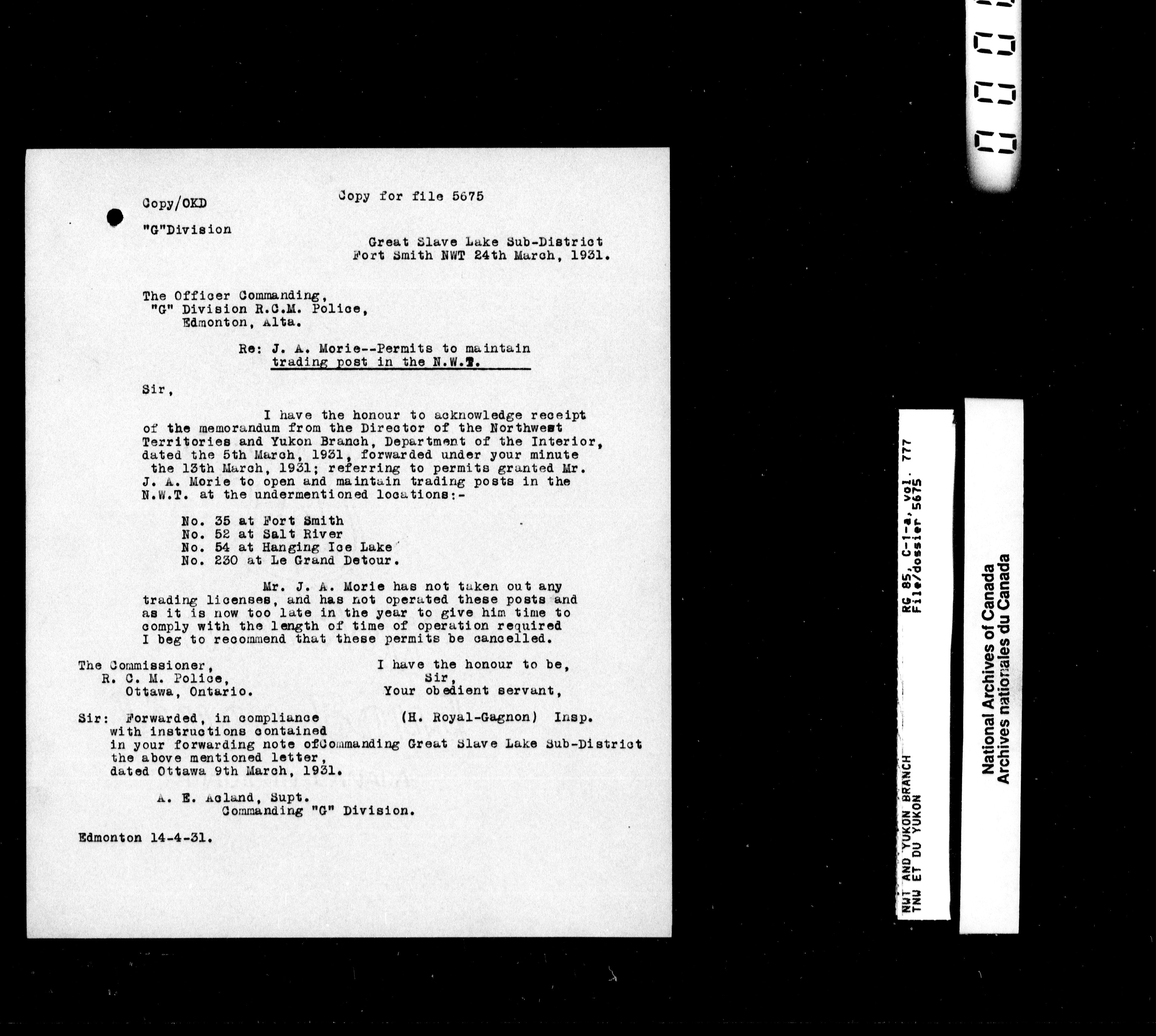 Department of Indian Affairs : Northwest Territories and Yukon Branch, Central Registry files - 13283