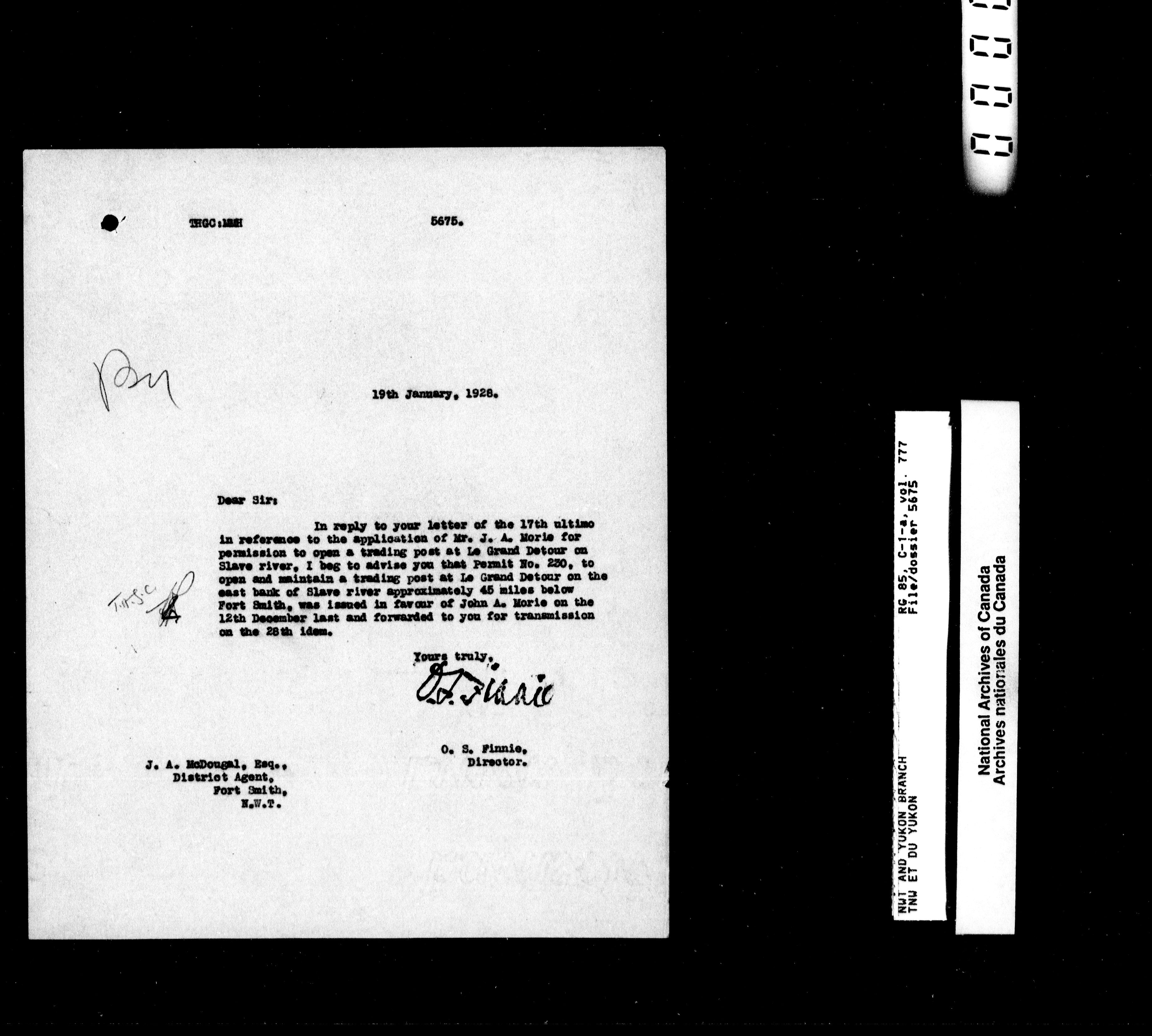 Department of Indian Affairs : Northwest Territories and Yukon Branch, Central Registry files - 13283