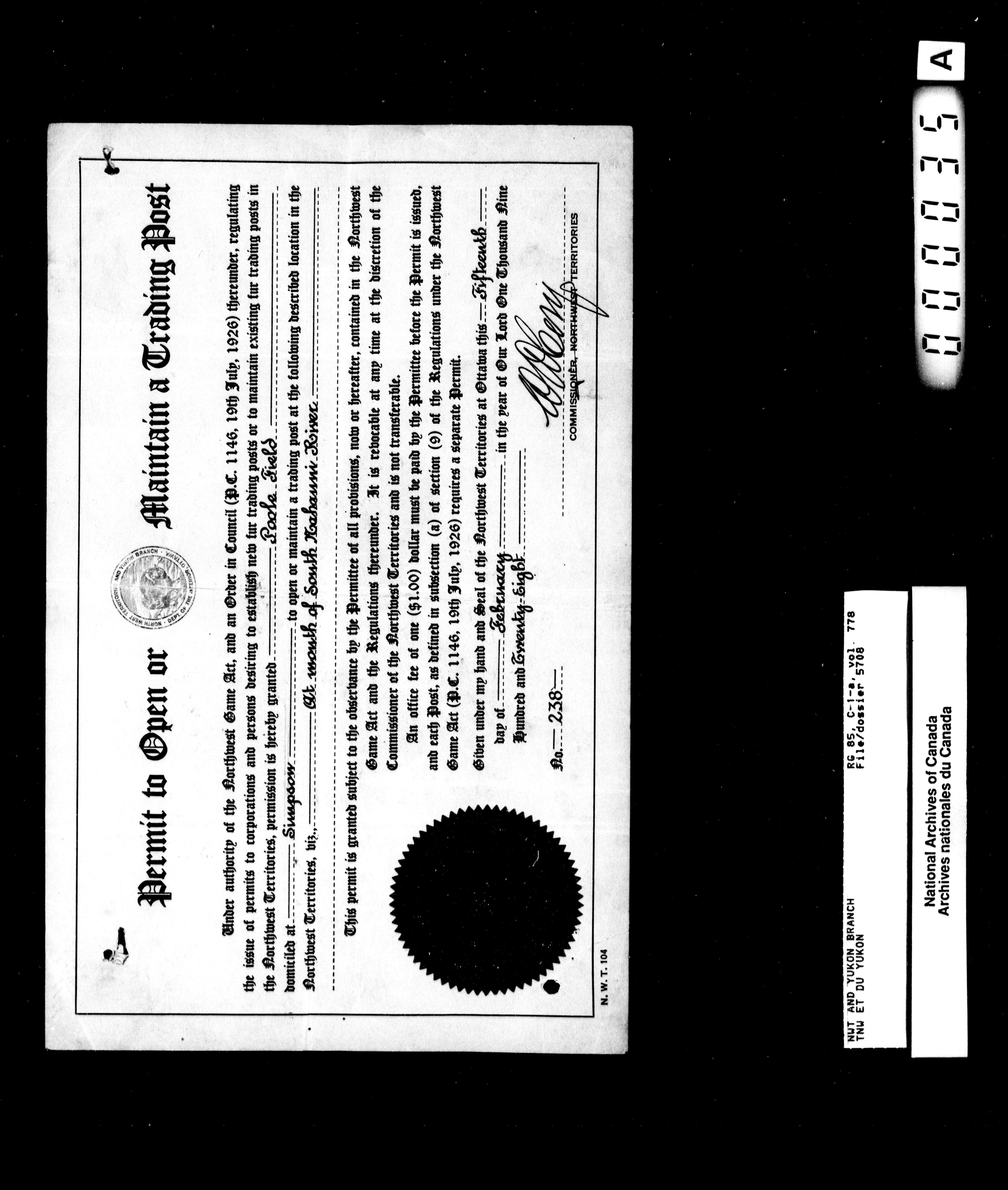 Department of Indian Affairs : Northwest Territories and Yukon Branch, Central Registry files - 13284