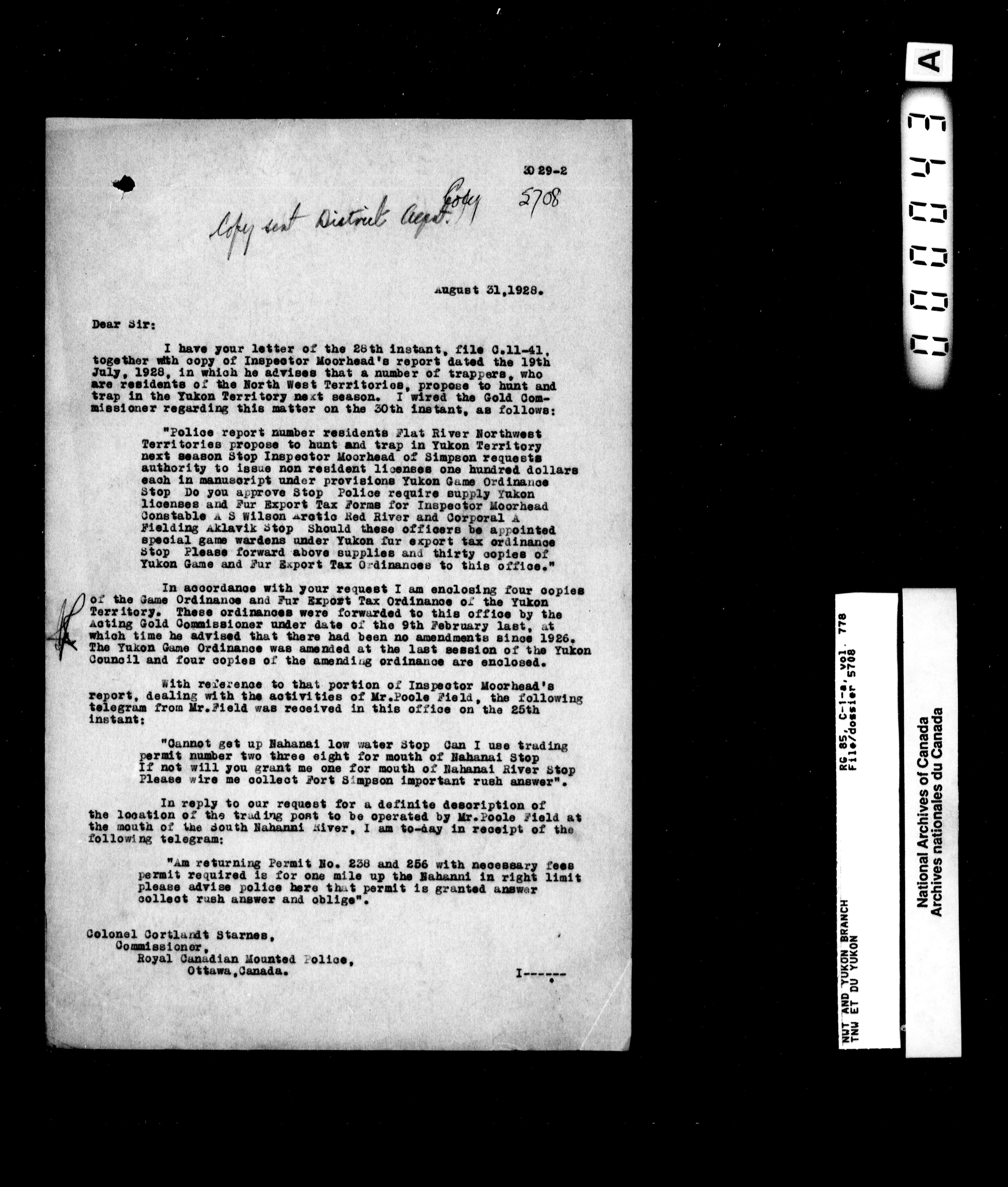 Department of Indian Affairs : Northwest Territories and Yukon Branch, Central Registry files - 13284