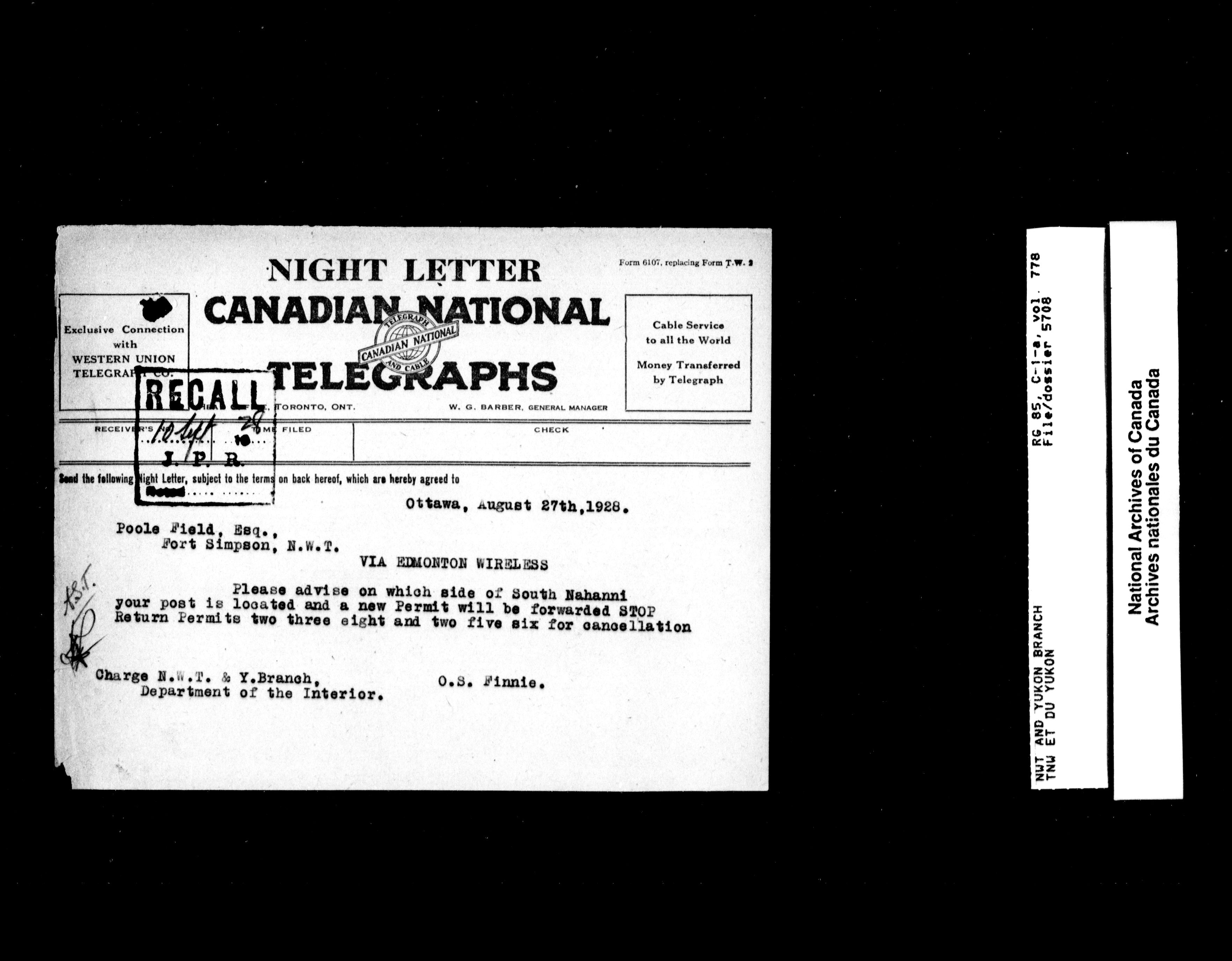 Department of Indian Affairs : Northwest Territories and Yukon Branch, Central Registry files - 13284