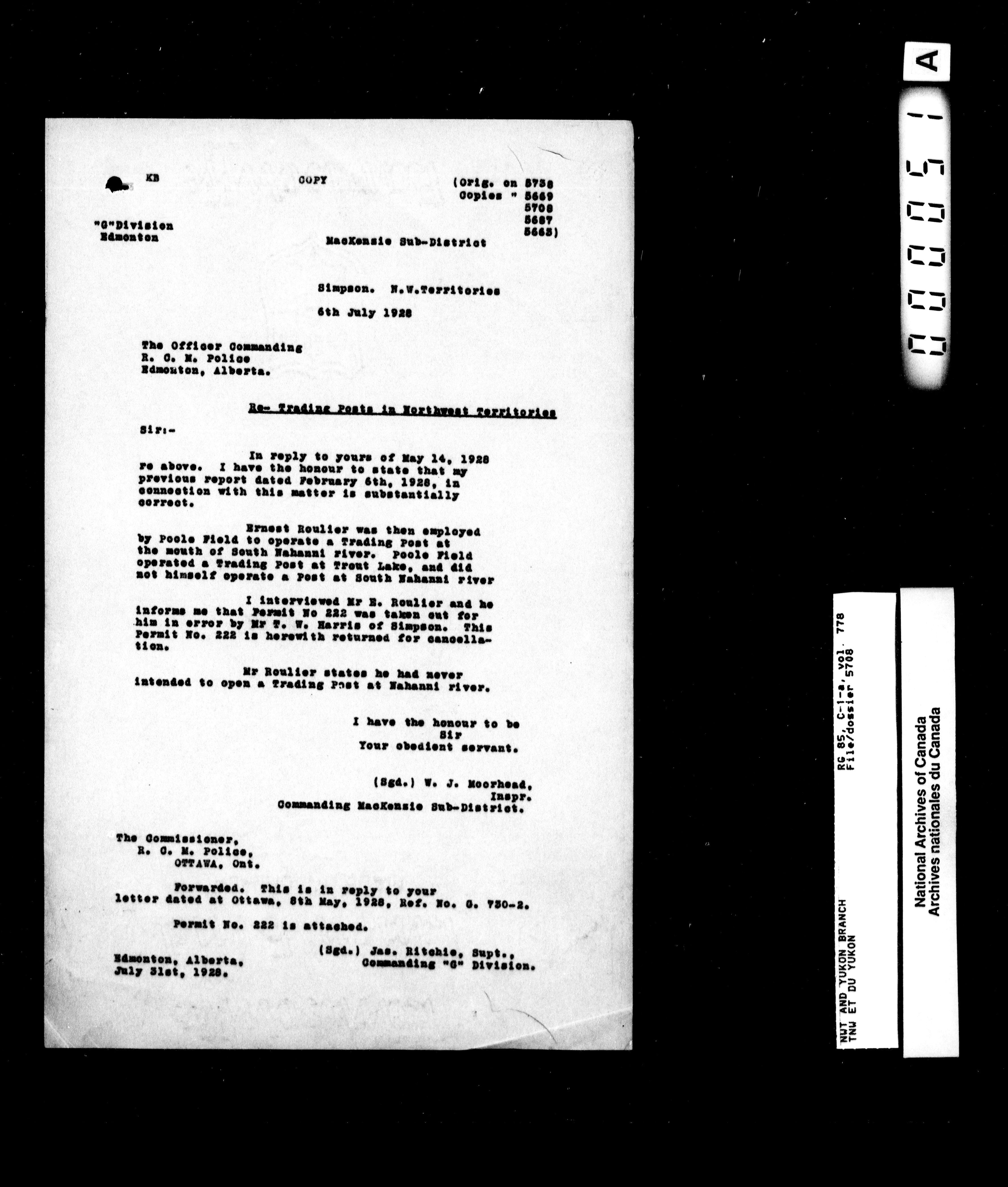 Department of Indian Affairs : Northwest Territories and Yukon Branch, Central Registry files - 13284