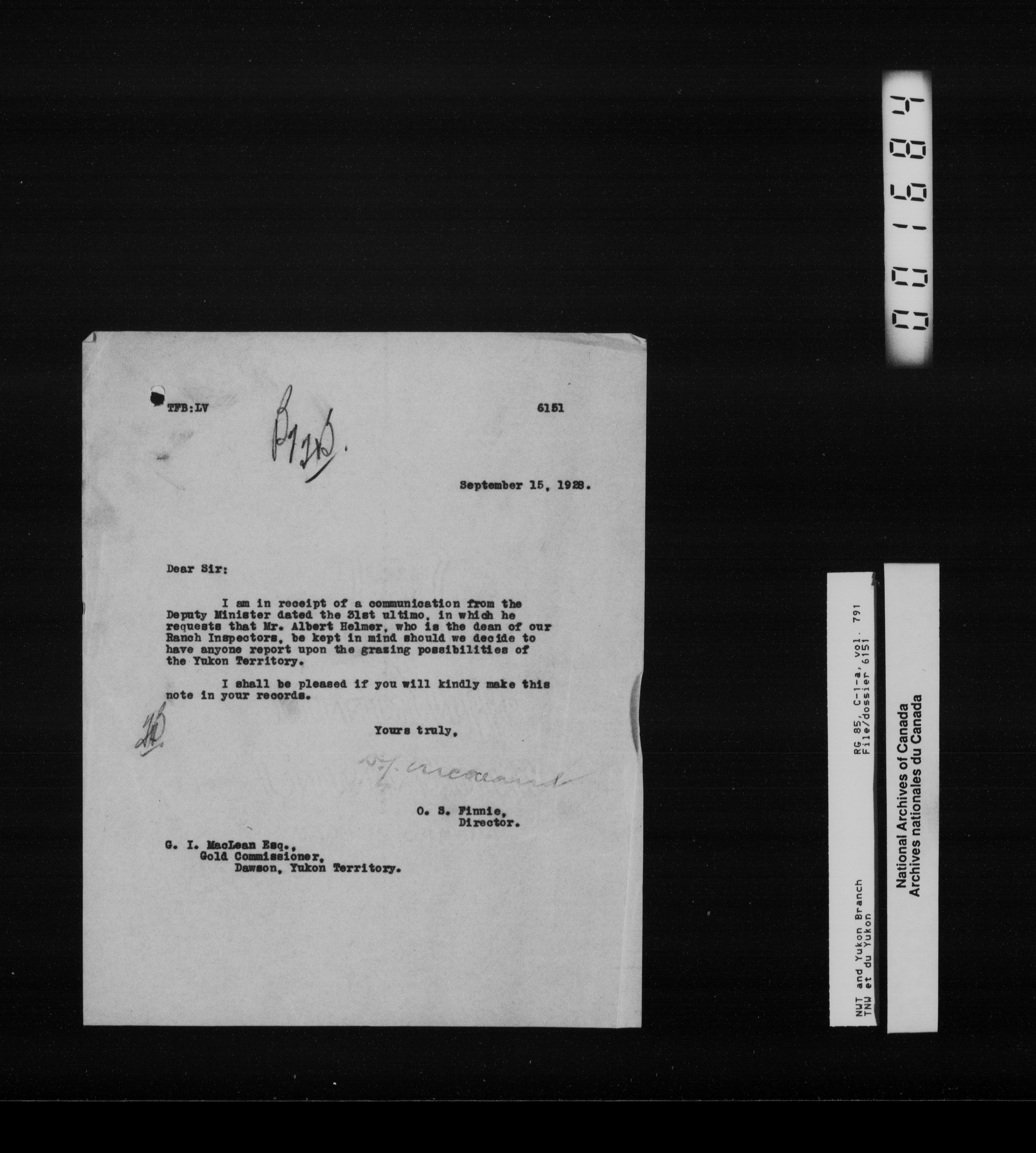 Department of Indian Affairs : Northwest Territories and Yukon Branch, Central Registry files - 13295
