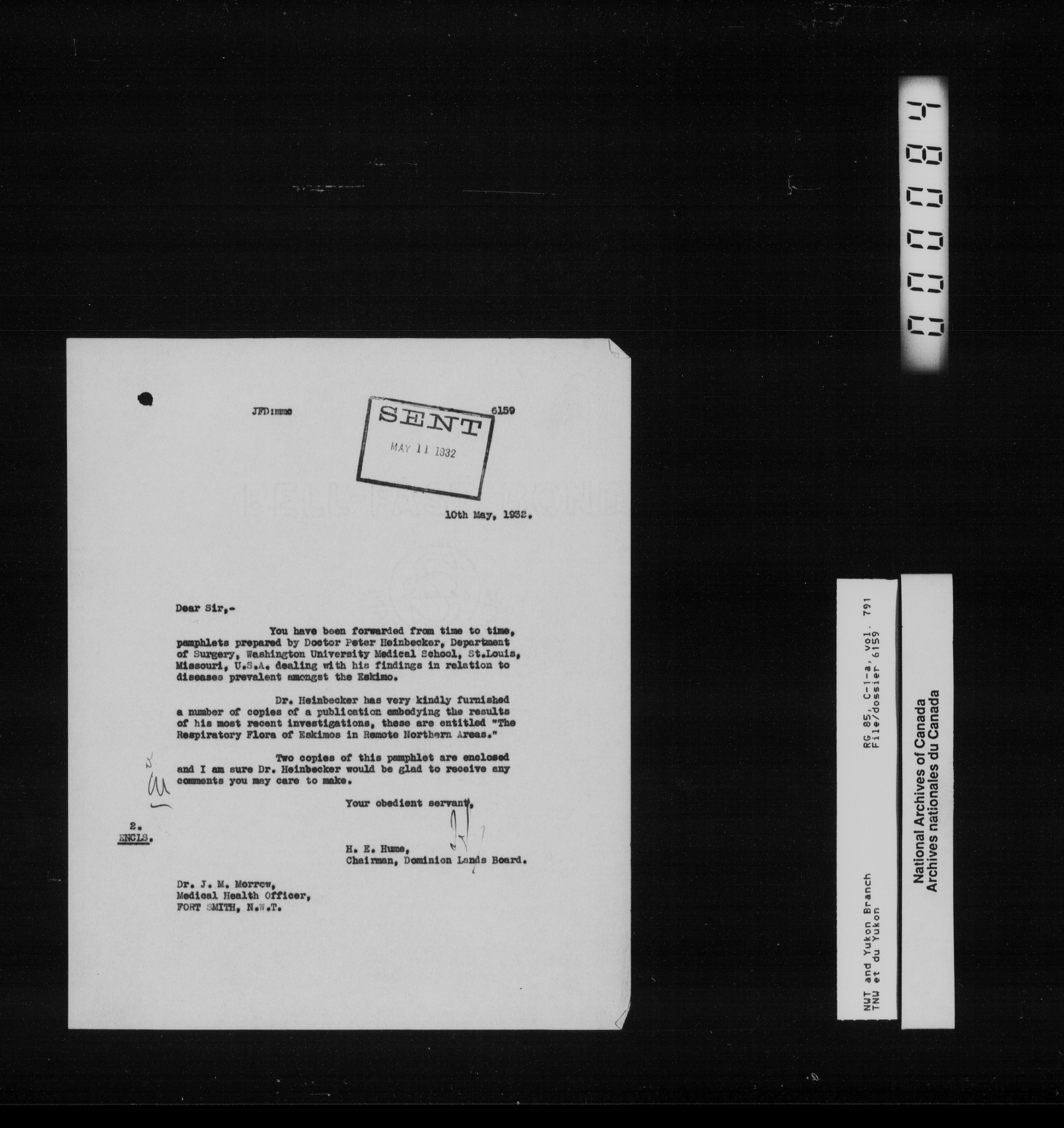 Department of Indian Affairs : Northwest Territories and Yukon Branch, Central Registry files - 13296