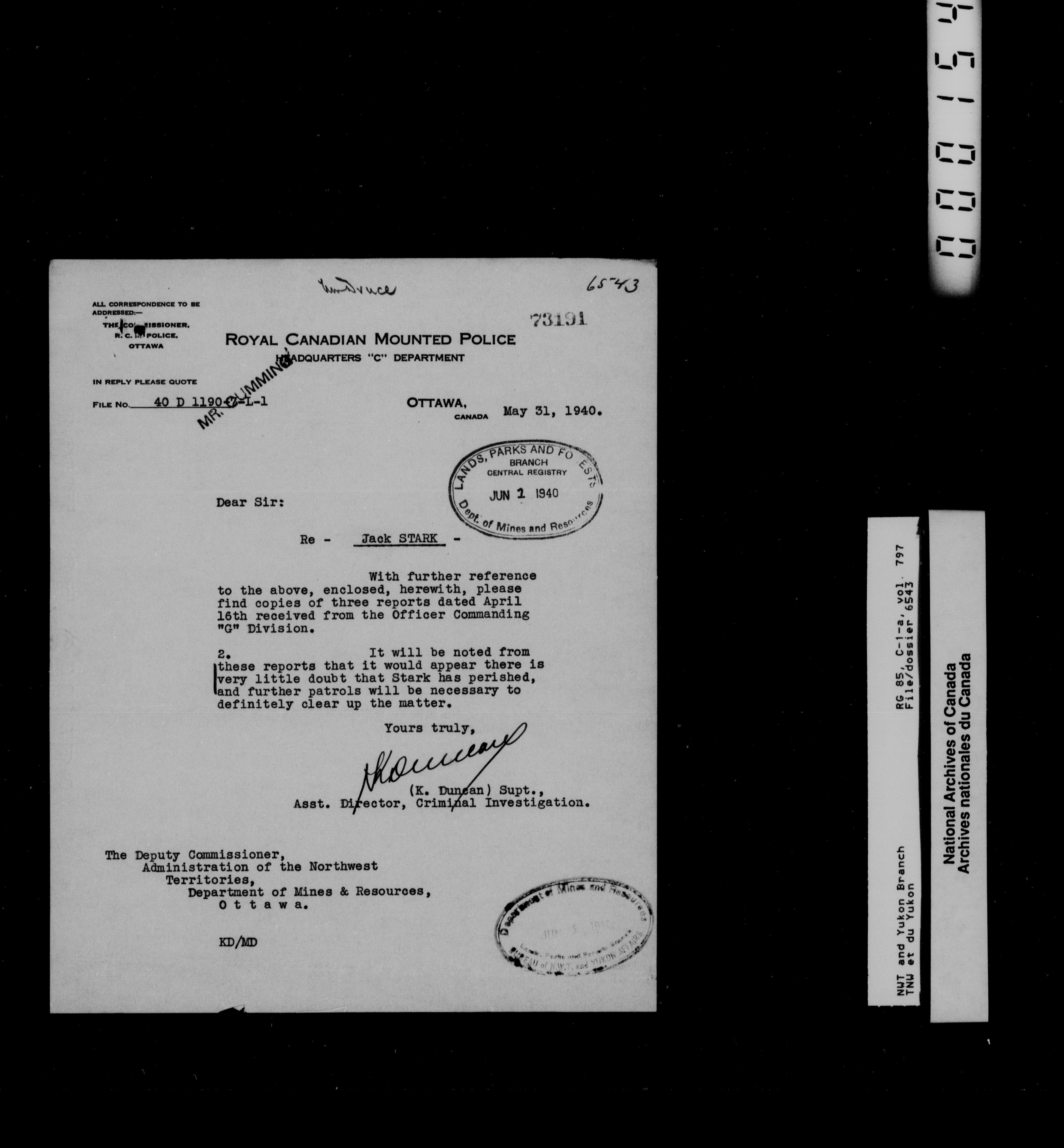 Department of Indian Affairs : Northwest Territories and Yukon Branch, Central Registry files - 13301