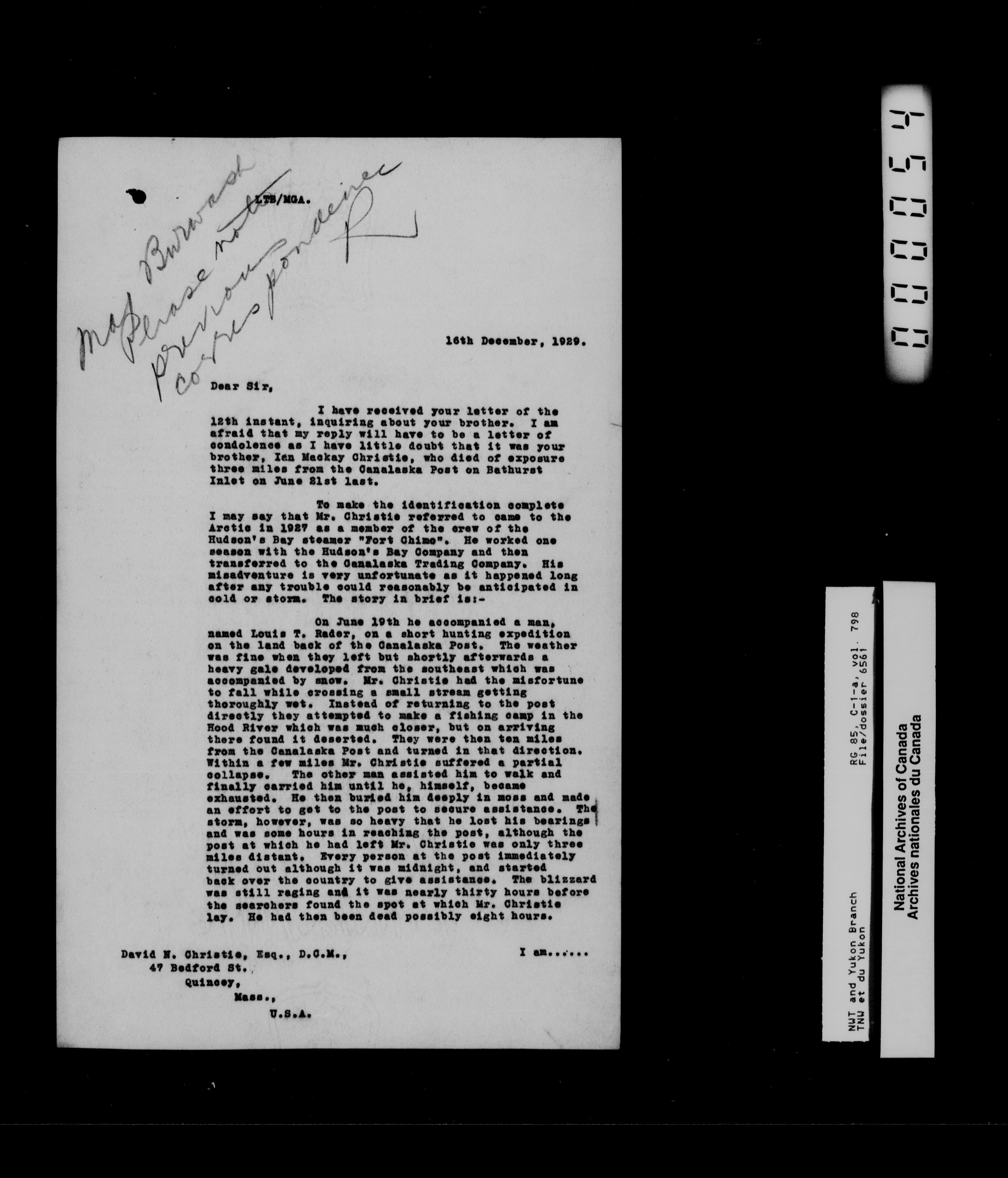 Department of Indian Affairs : Northwest Territories and Yukon Branch, Central Registry files - 13302
