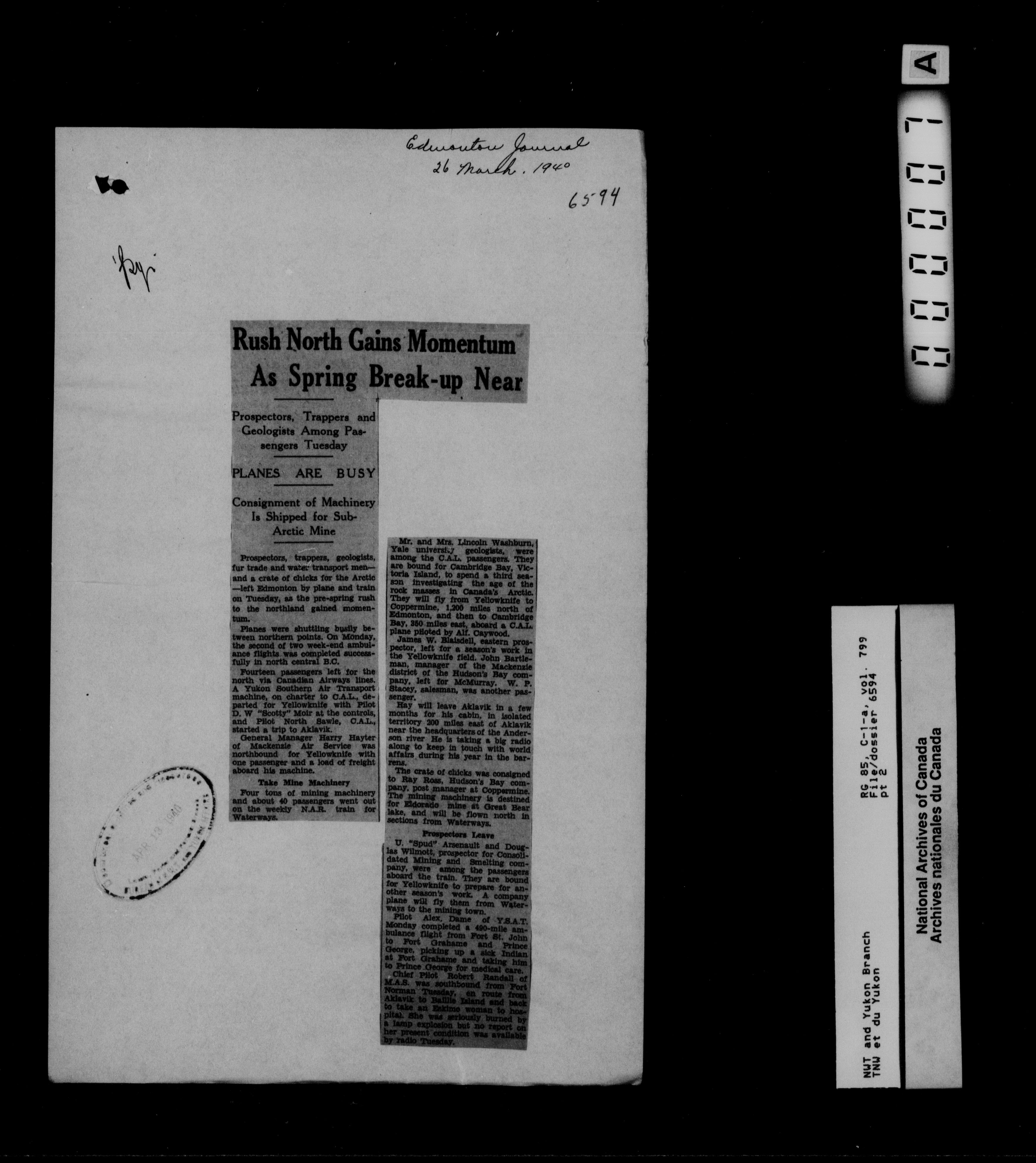 Department of Indian Affairs : Northwest Territories and Yukon Branch : T-13303