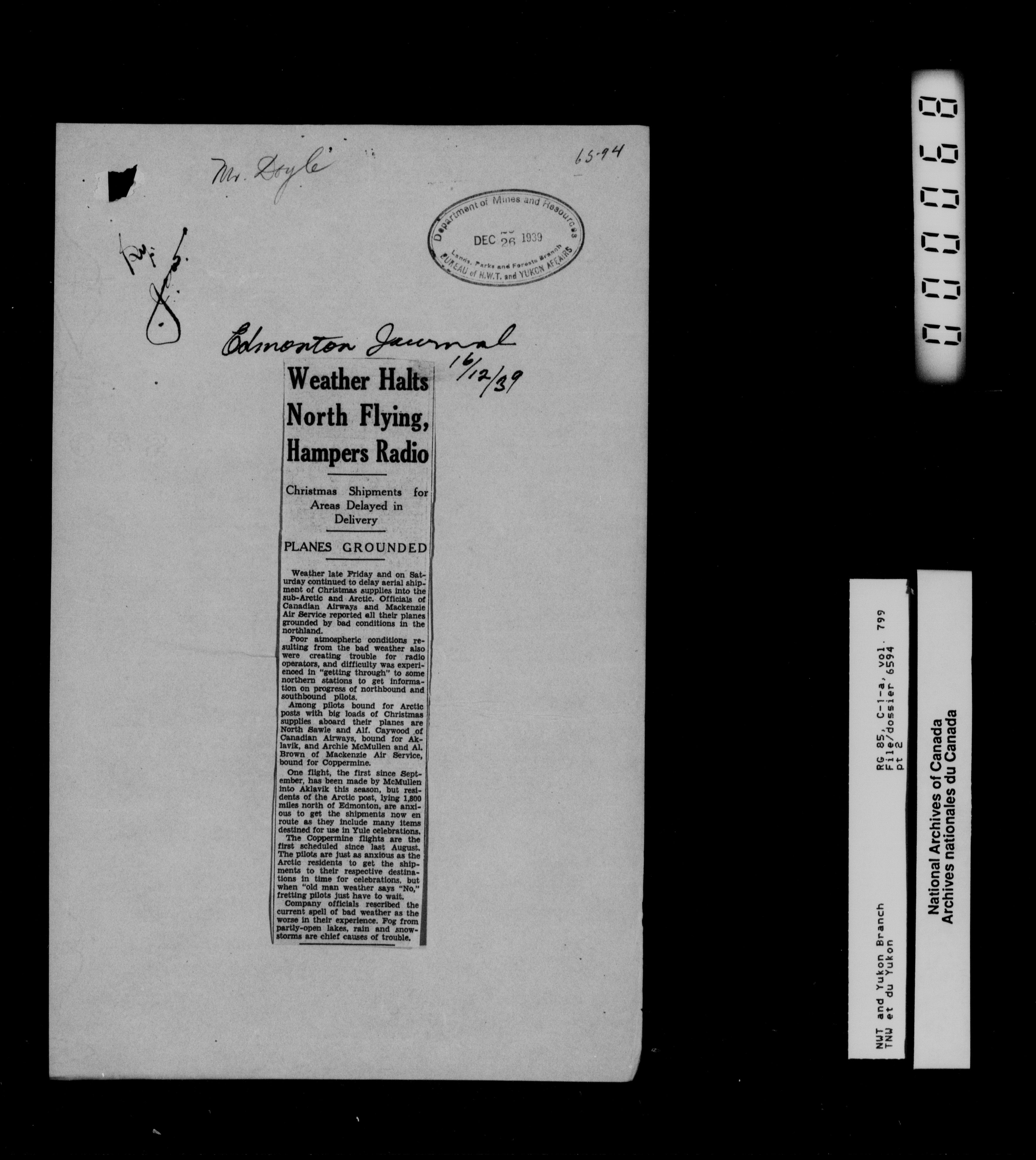 Department of Indian Affairs : Northwest Territories and Yukon Branch, Central Registry files - 13303