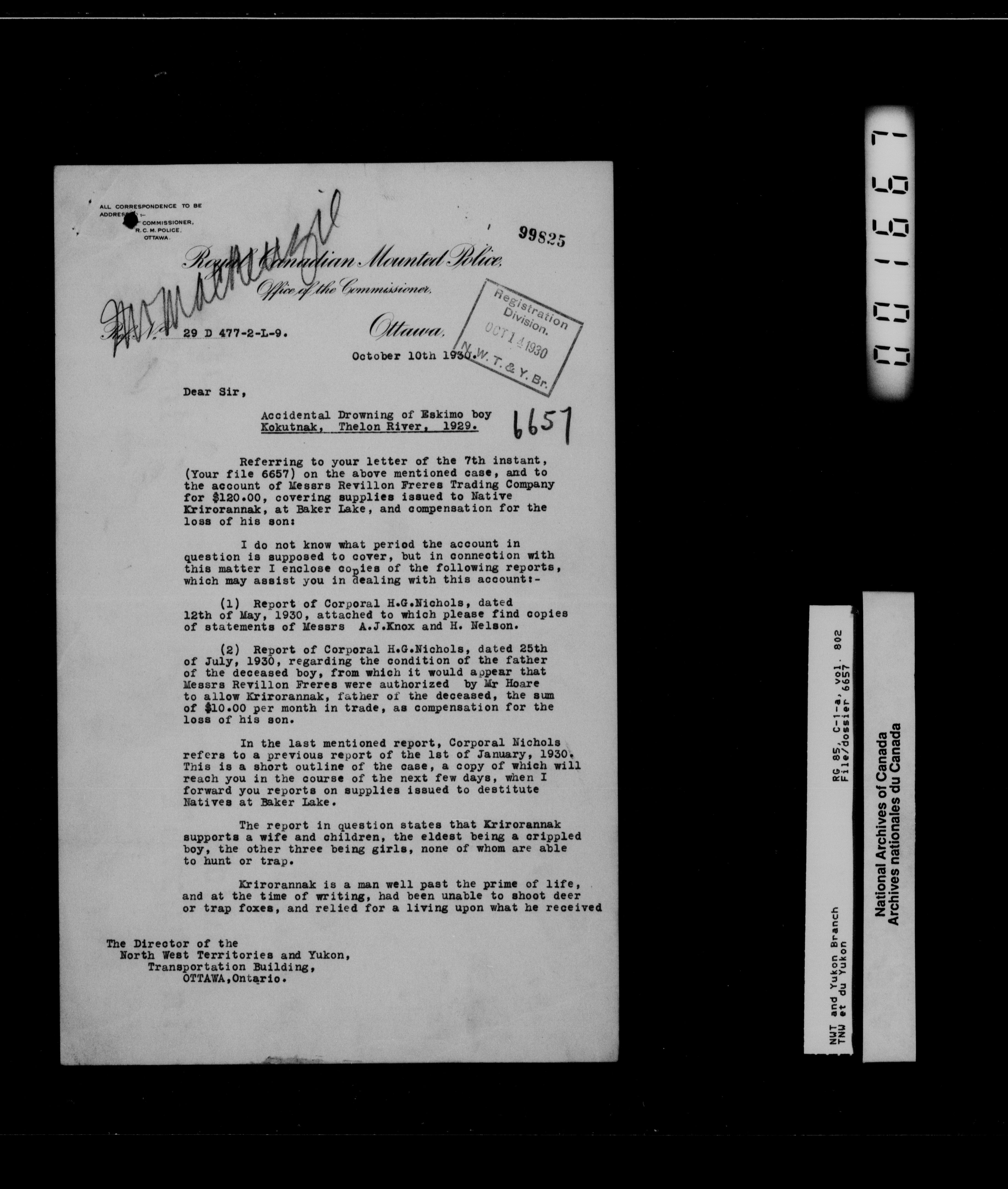 Department of Indian Affairs : Northwest Territories and Yukon Branch, Central Registry files - 13306