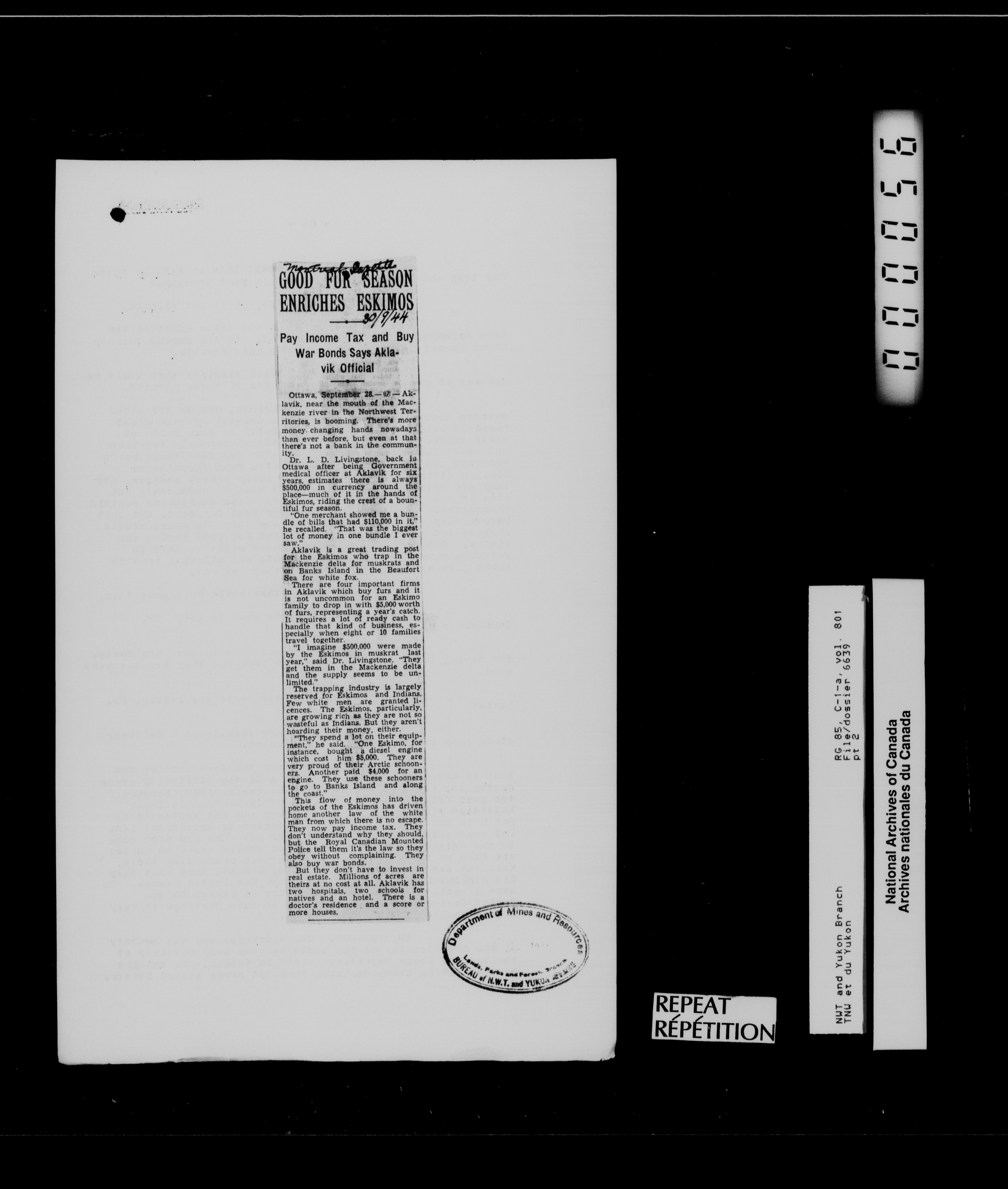 Department of Indian Affairs : Northwest Territories and Yukon Branch, Central Registry files - 13306