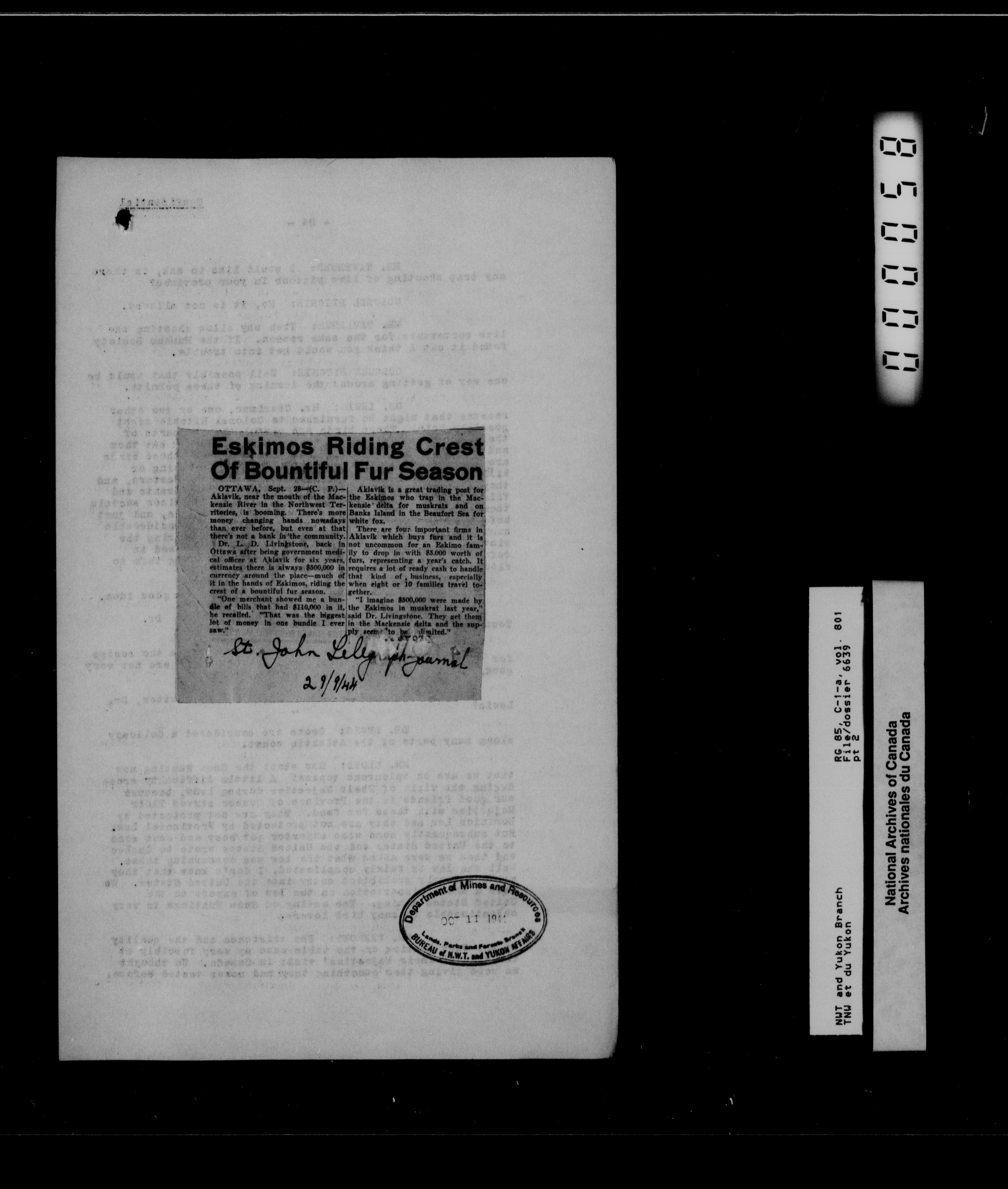Department of Indian Affairs : Northwest Territories and Yukon Branch, Central Registry files - 13306