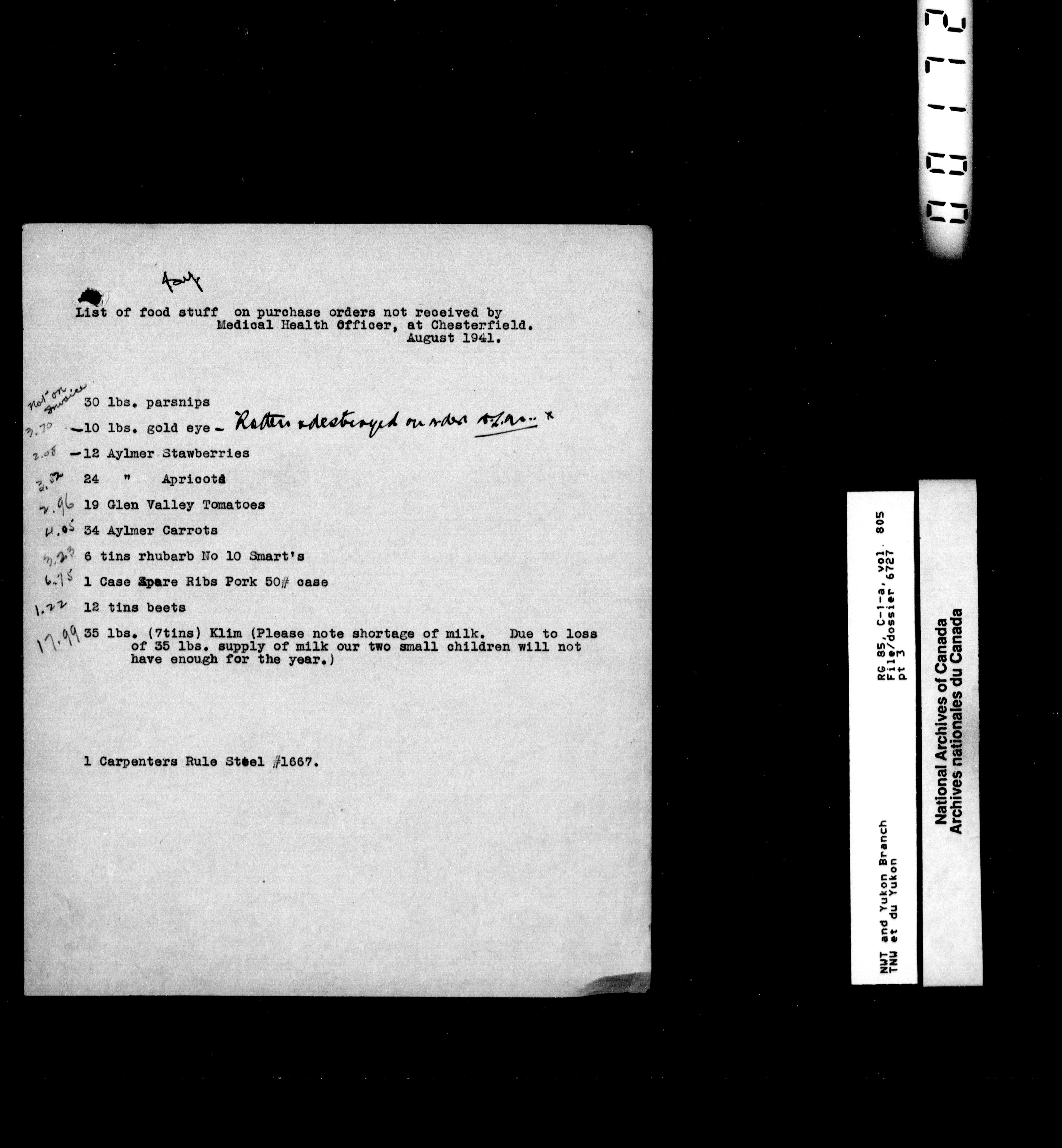 Department of Indian Affairs : Northwest Territories and Yukon Branch, Central Registry files - 13309