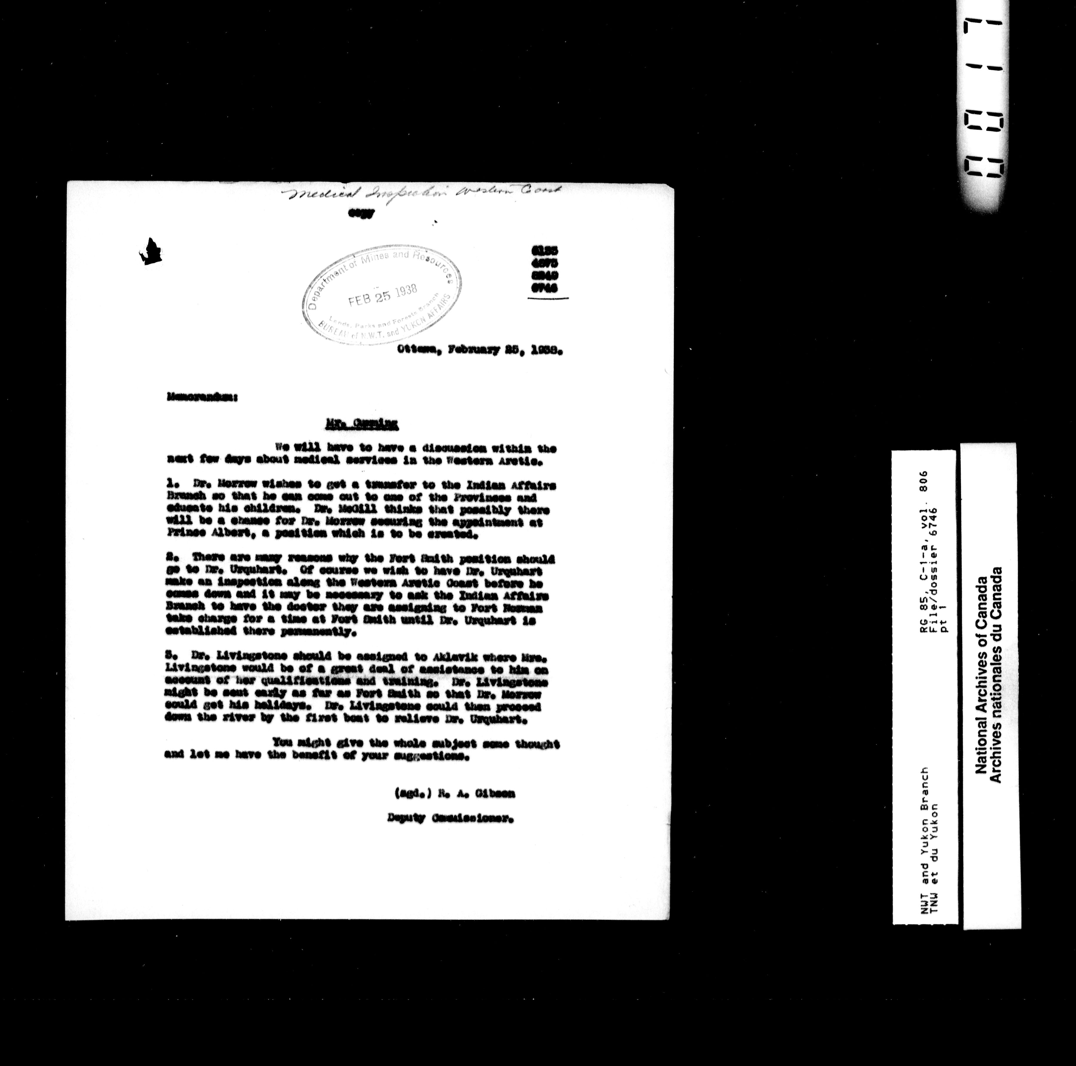 Department of Indian Affairs : Northwest Territories and Yukon Branch : T-13310