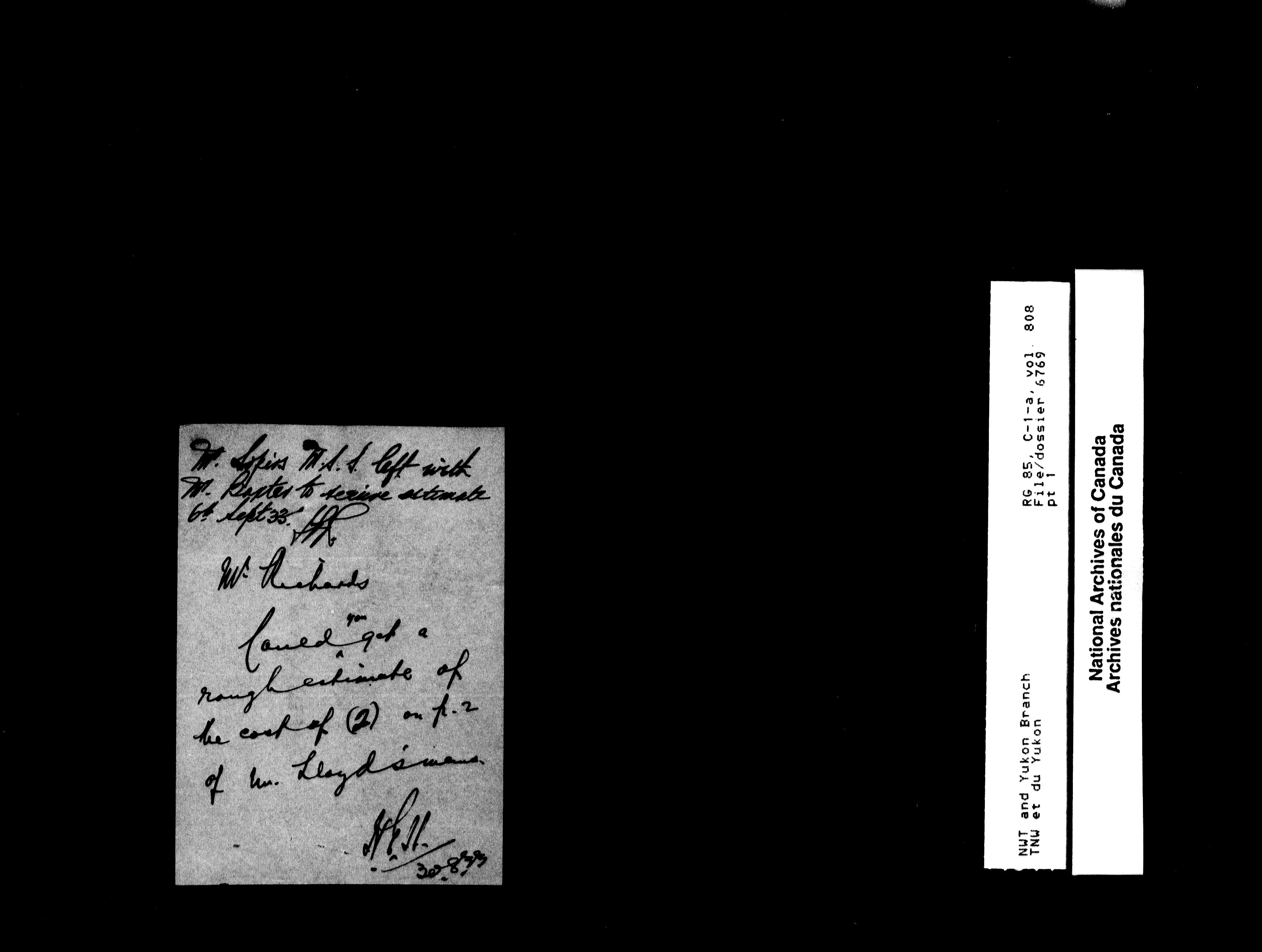 Department of Indian Affairs : Northwest Territories and Yukon Branch, Central Registry files - 13312