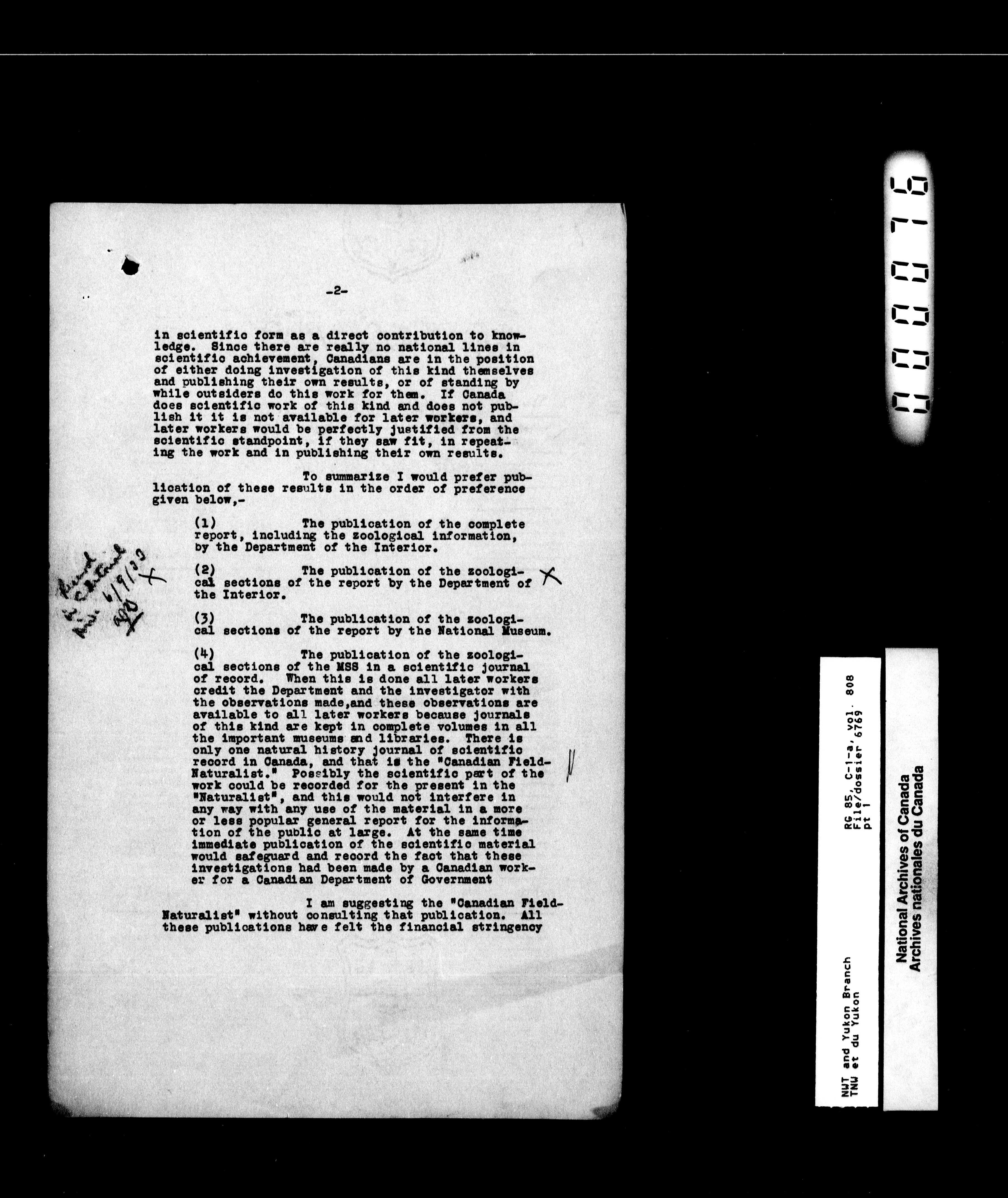 Department of Indian Affairs : Northwest Territories and Yukon Branch, Central Registry files - 13312