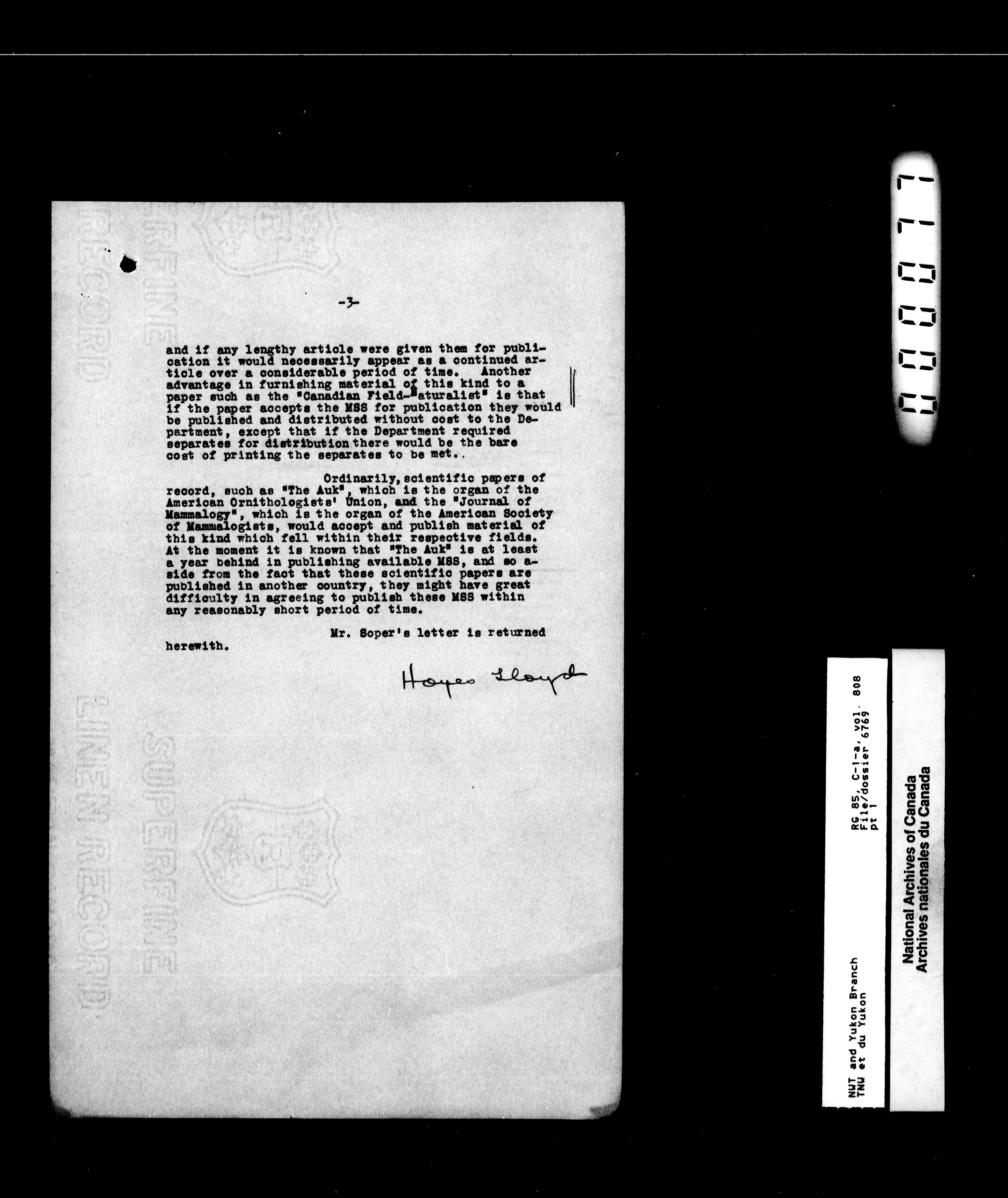 Department of Indian Affairs : Northwest Territories and Yukon Branch, Central Registry files - 13312