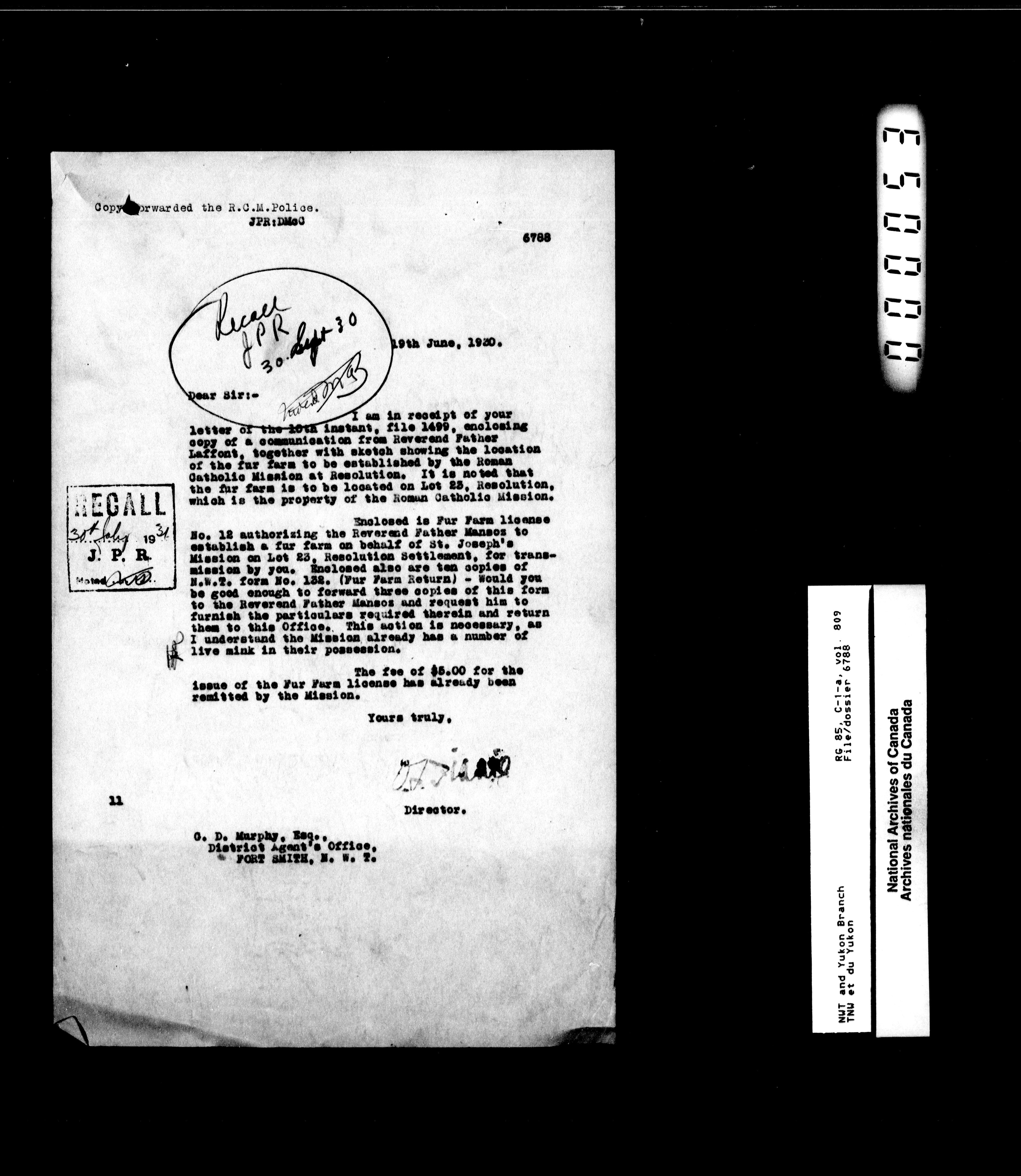 Department of Indian Affairs : Northwest Territories and Yukon Branch, Central Registry files - 13313