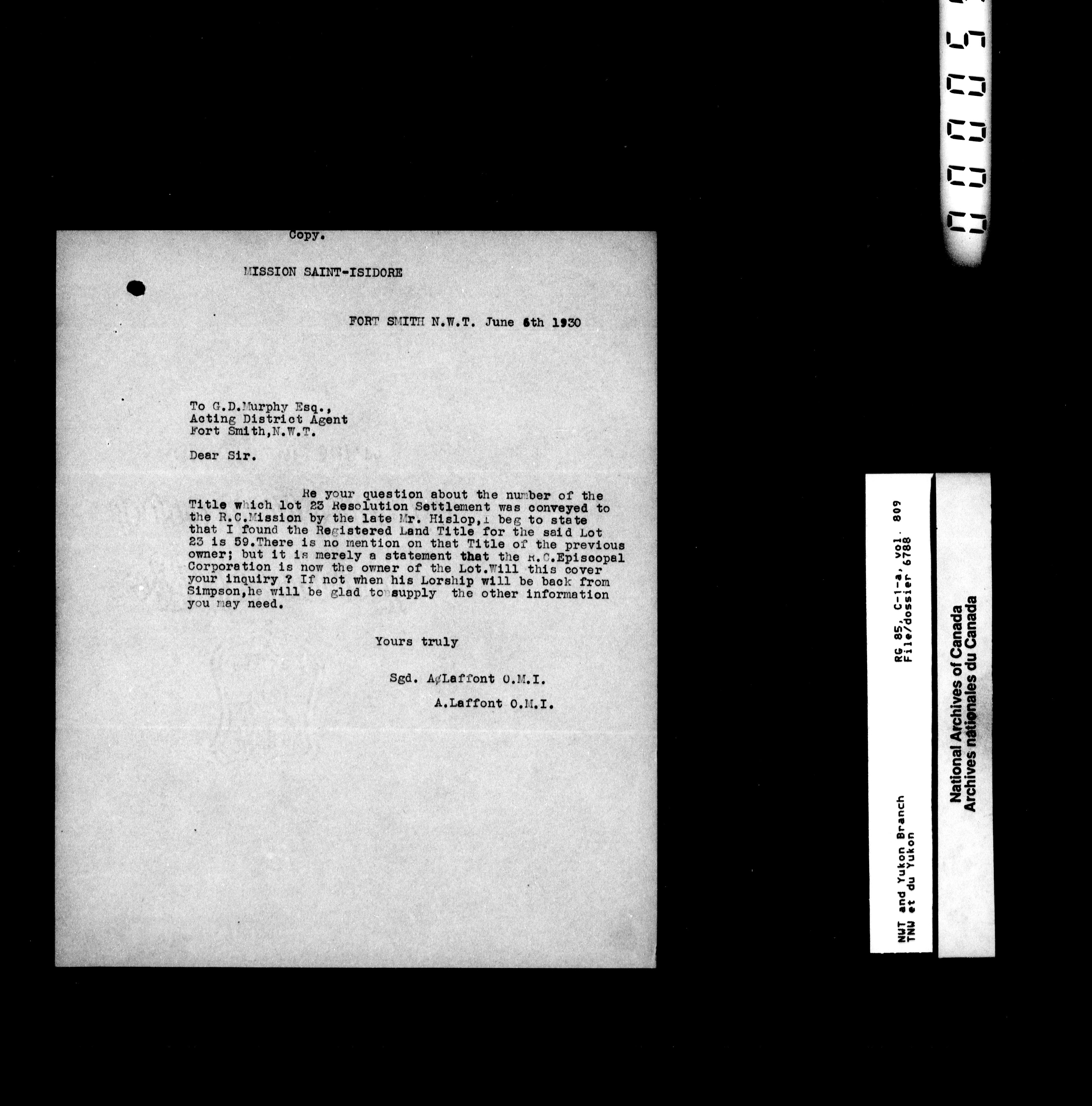 Department of Indian Affairs : Northwest Territories and Yukon Branch, Central Registry files - 13313