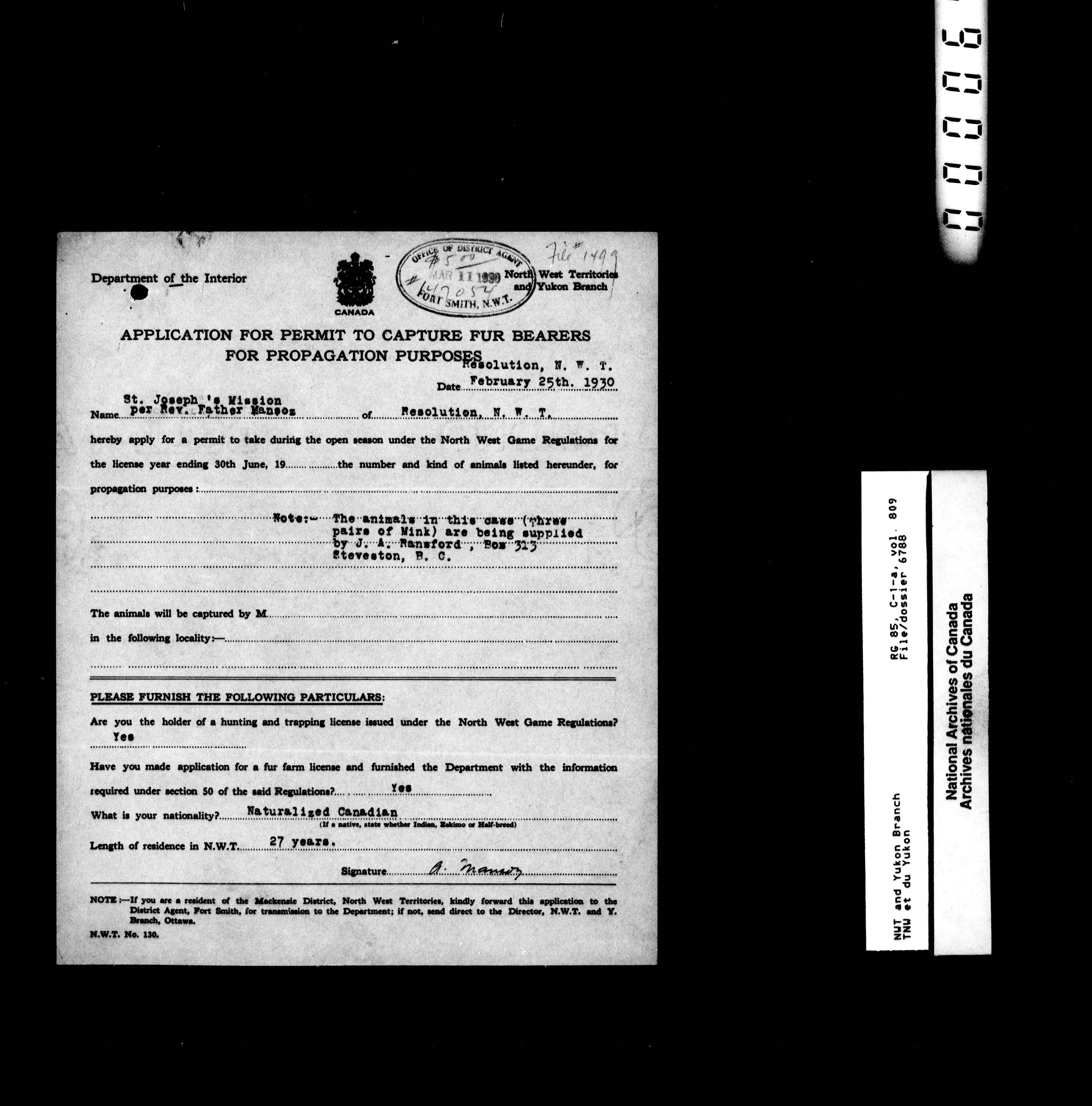 Department of Indian Affairs : Northwest Territories and Yukon Branch, Central Registry files - 13313