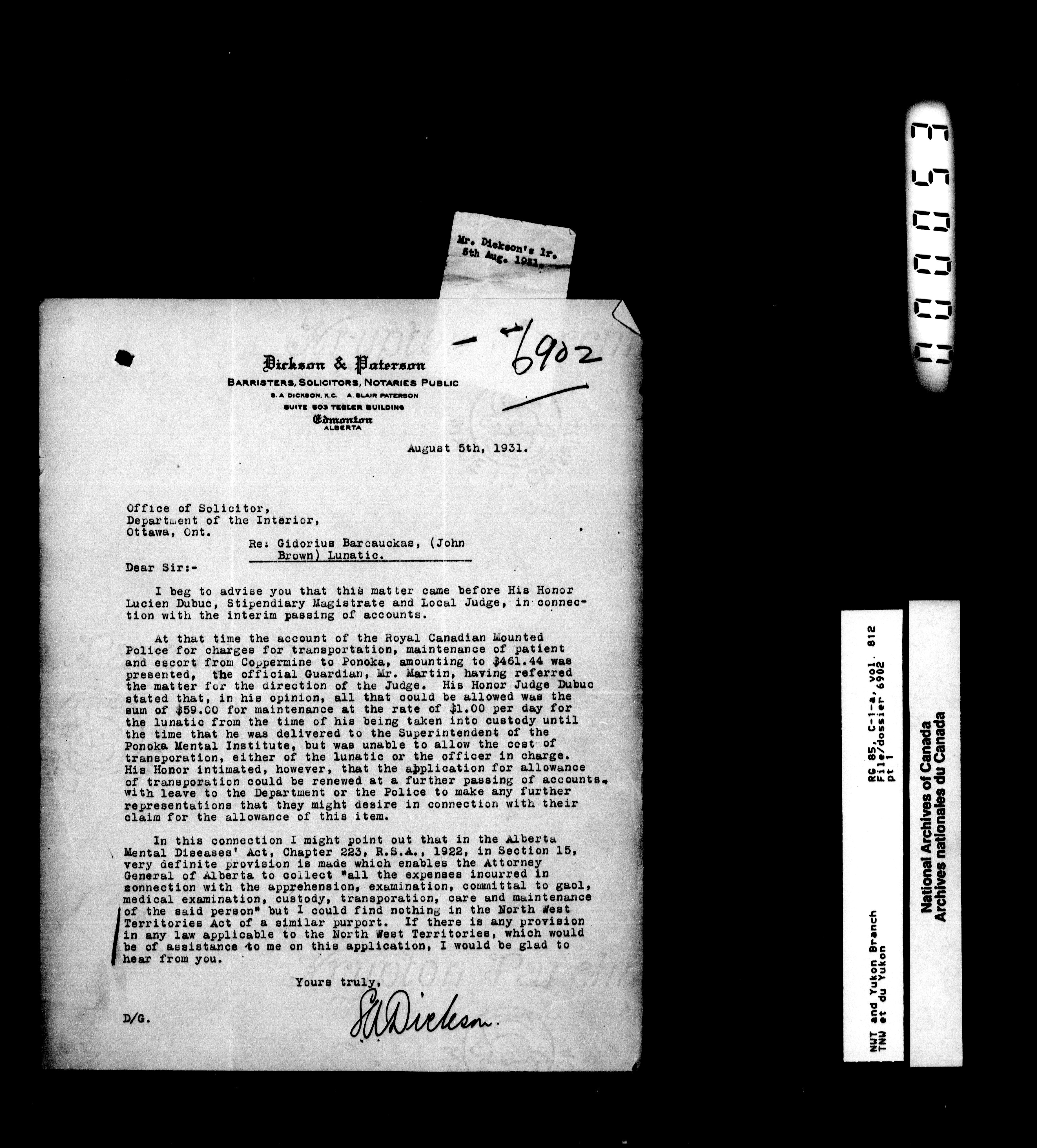 Department of Indian Affairs : Northwest Territories and Yukon Branch, Central Registry files - 13316