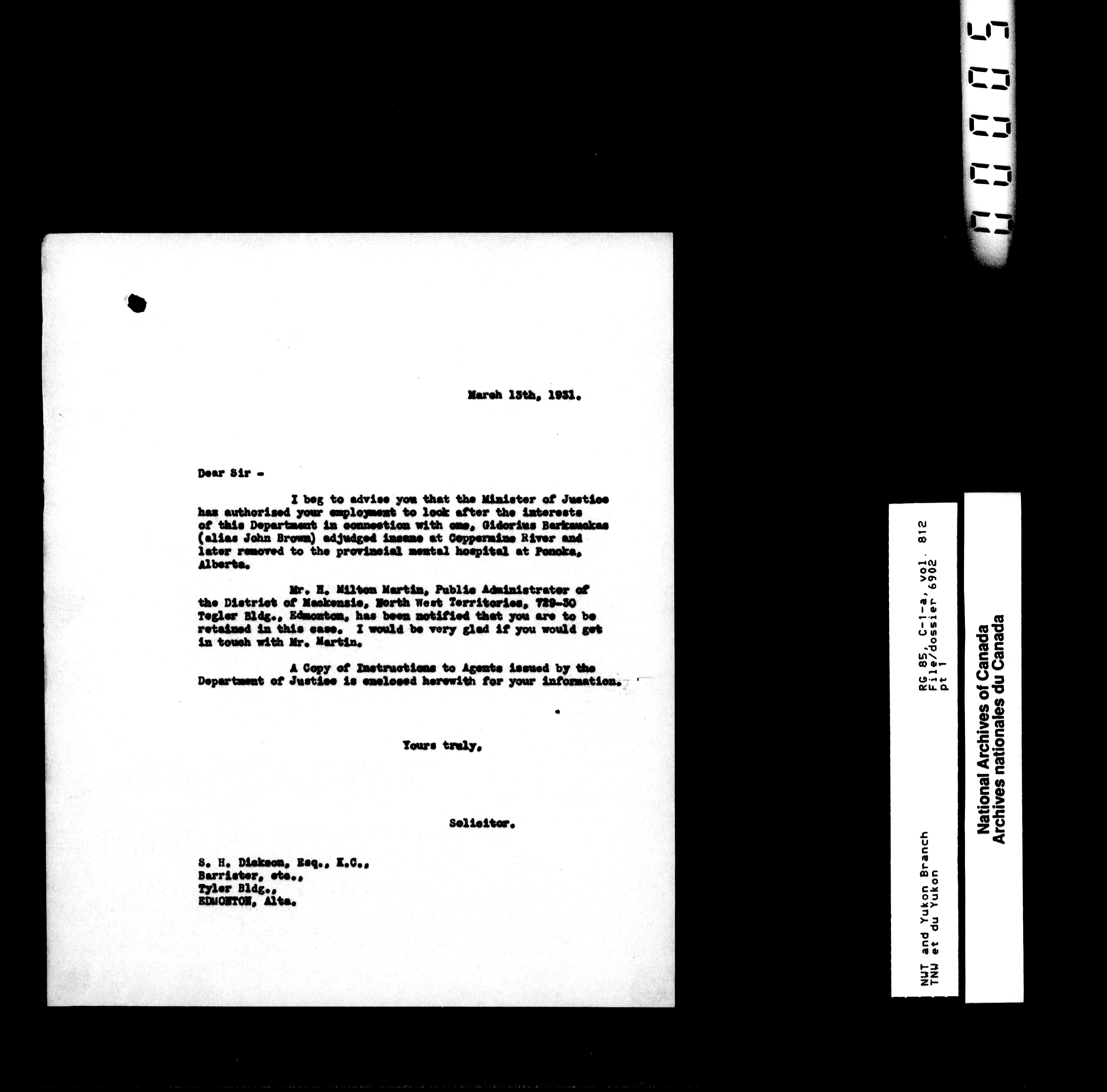 Department of Indian Affairs : Northwest Territories and Yukon Branch, Central Registry files - 13316