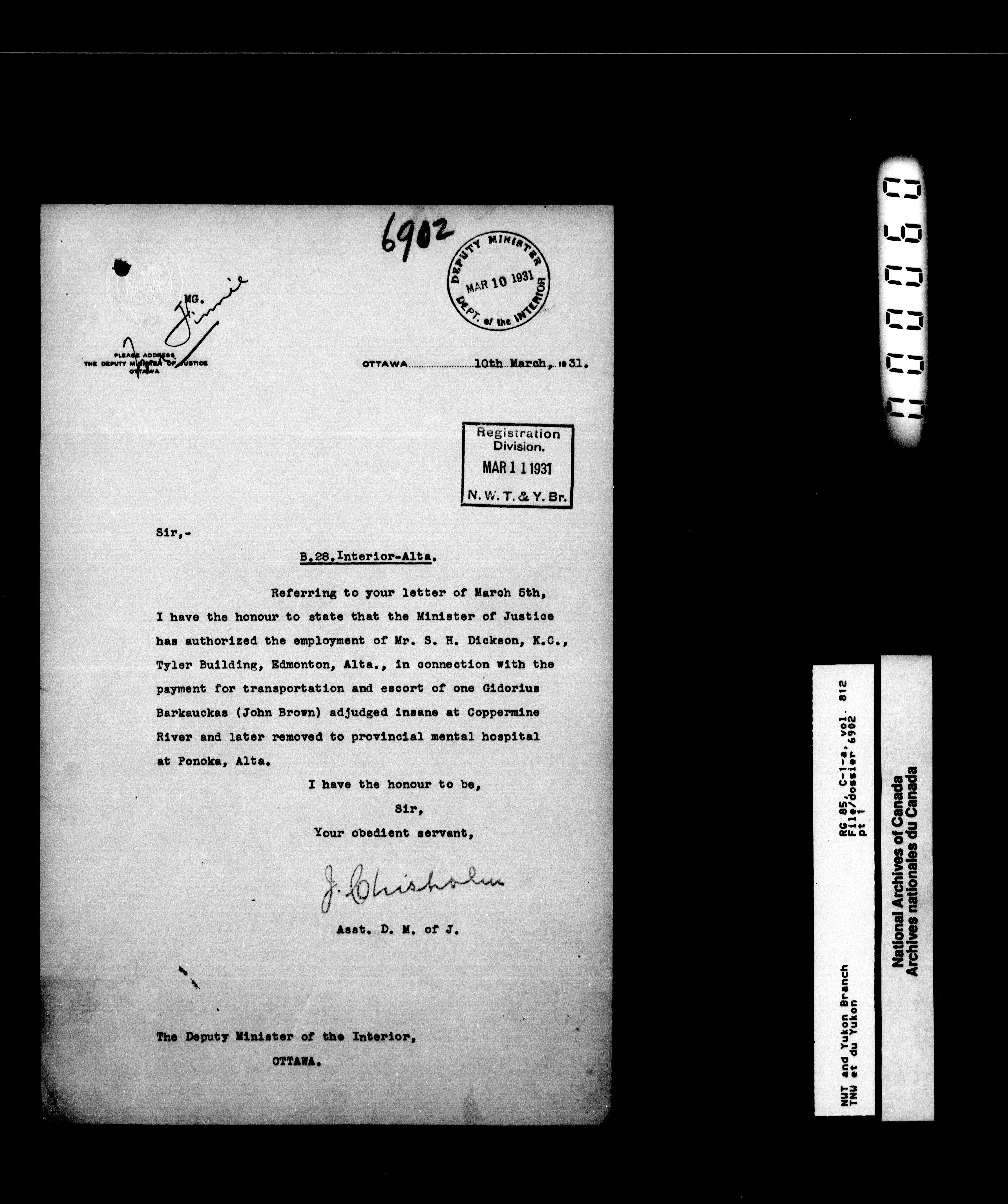 Department of Indian Affairs : Northwest Territories and Yukon Branch, Central Registry files - 13316