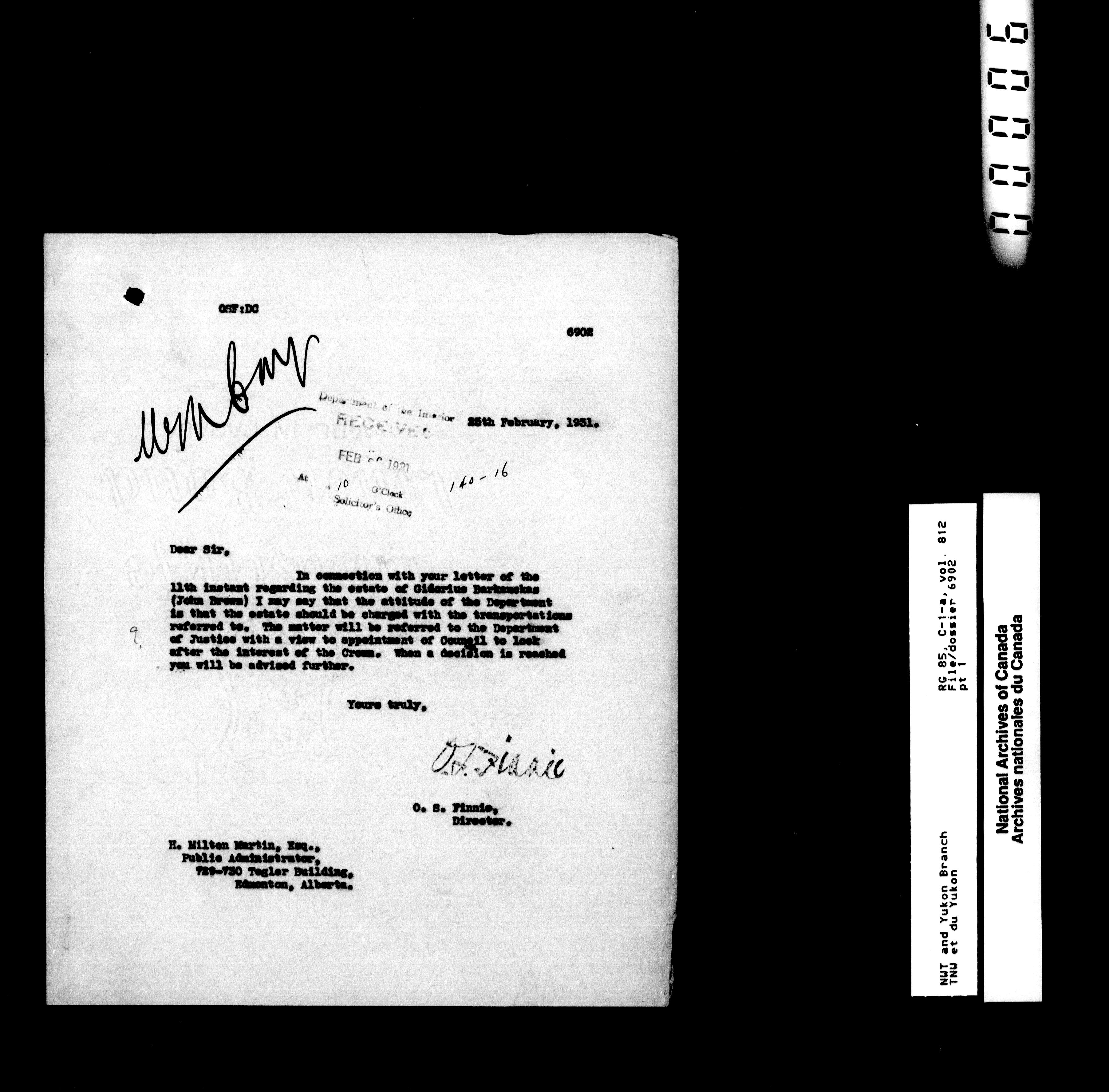 Department of Indian Affairs : Northwest Territories and Yukon Branch, Central Registry files - 13316