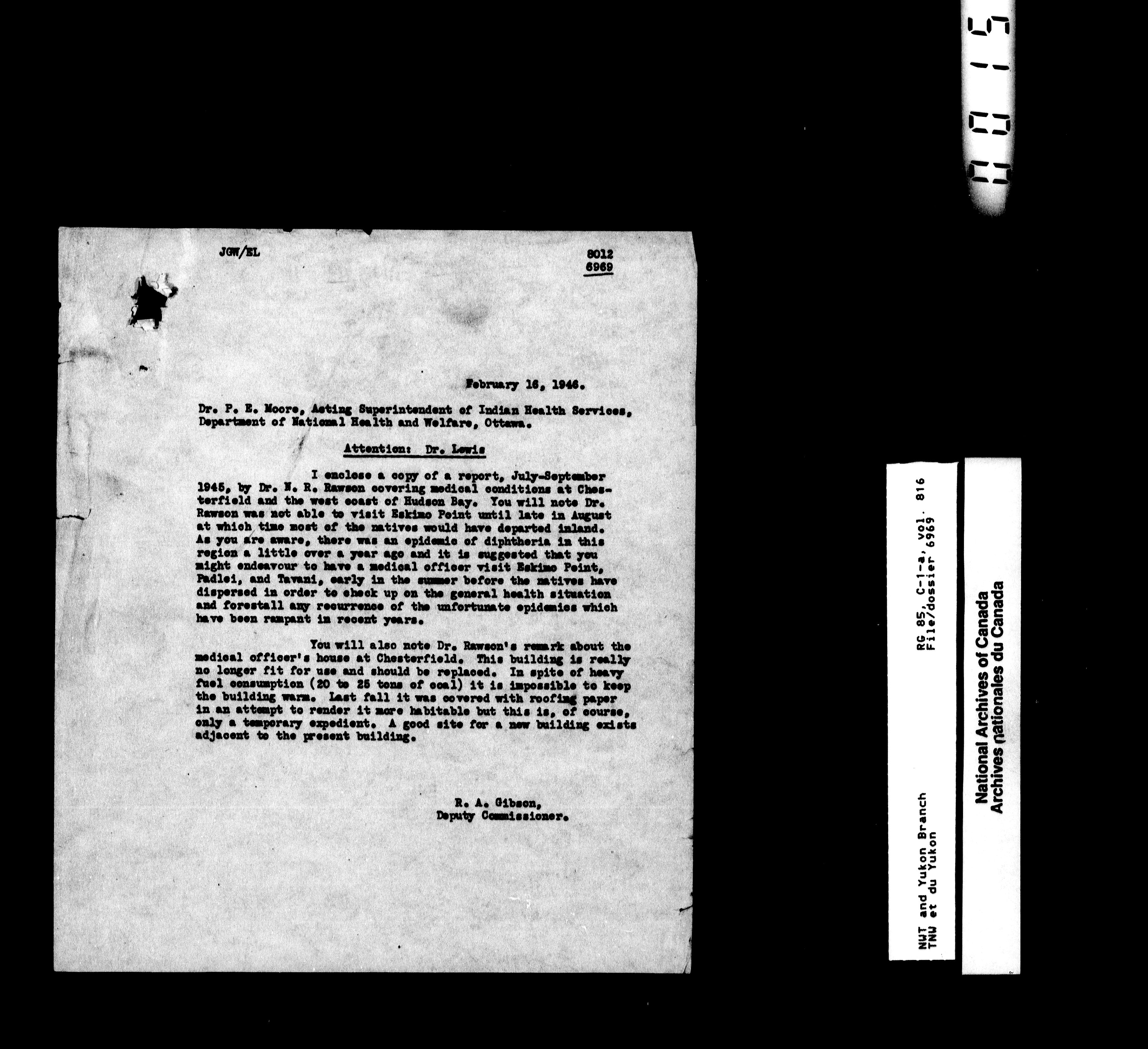 Department of Indian Affairs : Northwest Territories and Yukon Branch, Central Registry files - 13318