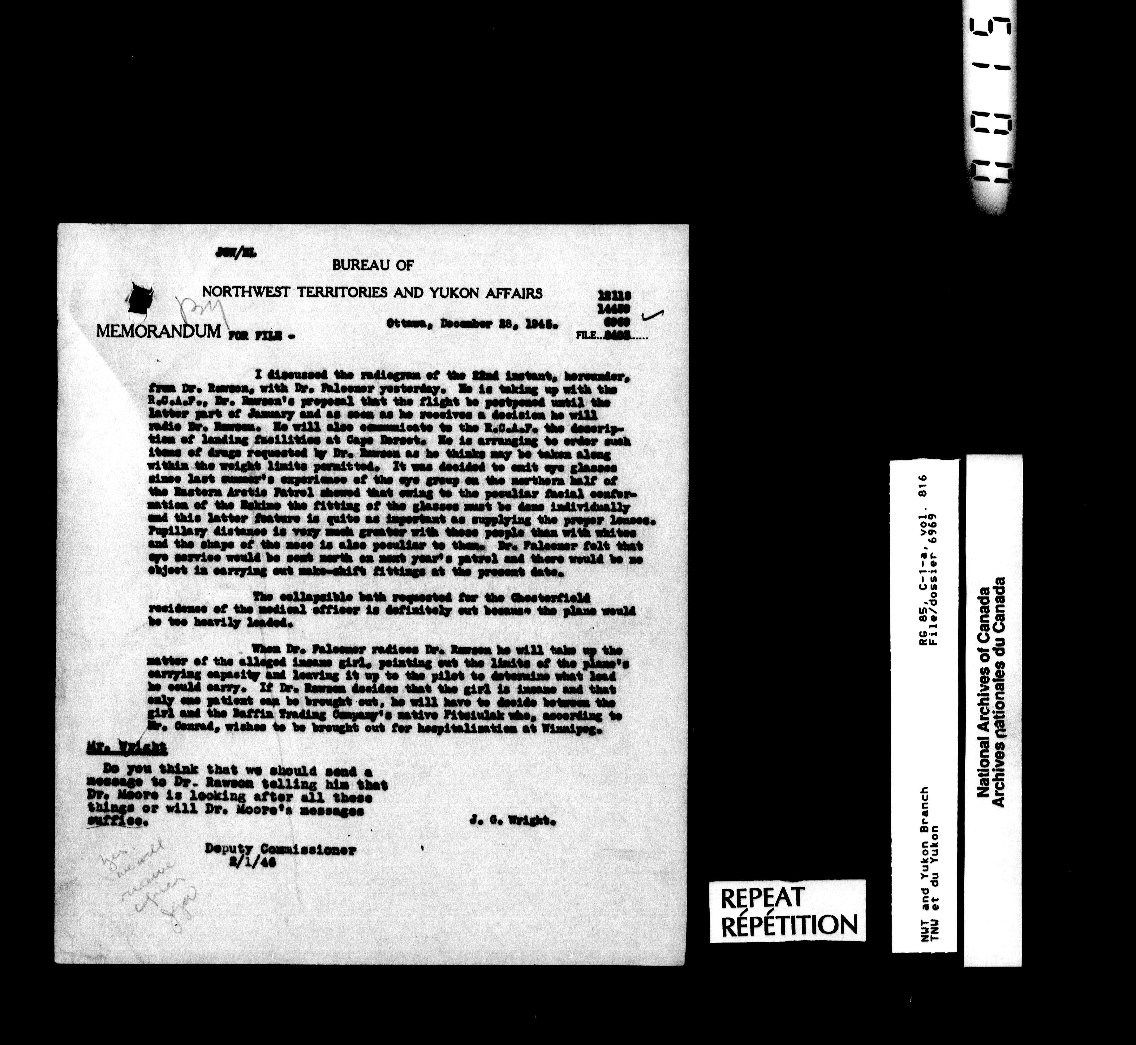 Department of Indian Affairs : Northwest Territories and Yukon Branch, Central Registry files - 13318