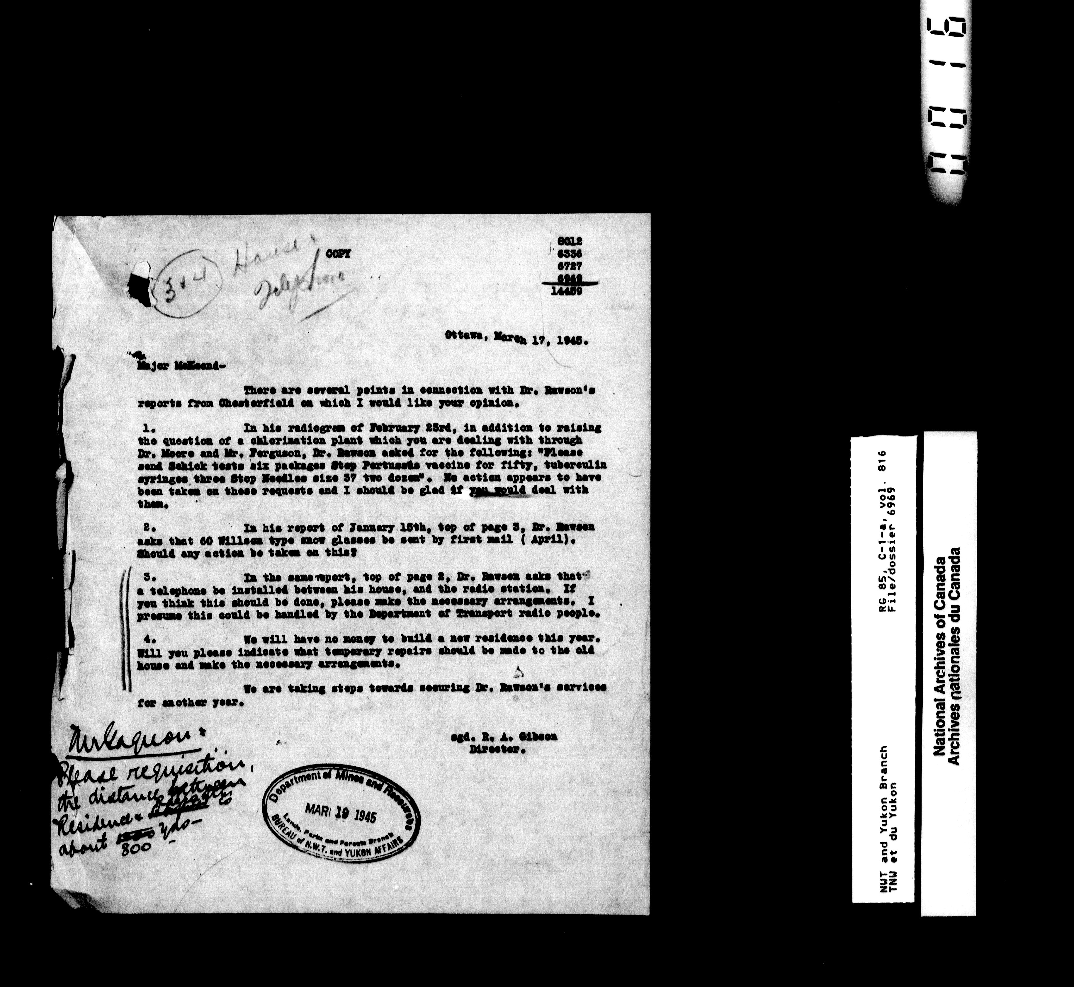Department of Indian Affairs : Northwest Territories and Yukon Branch, Central Registry files - 13318