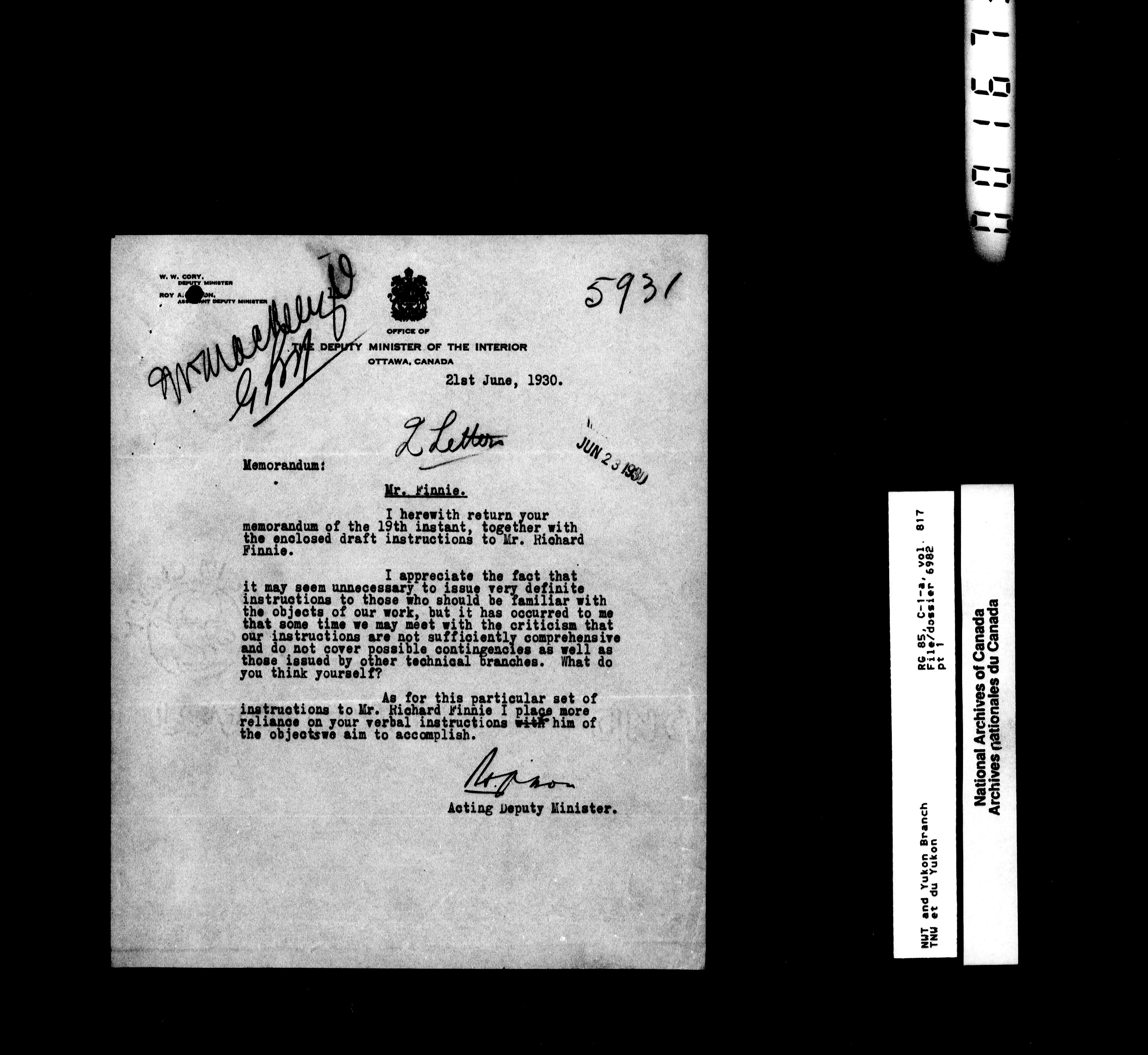 Department of Indian Affairs : Northwest Territories and Yukon Branch, Central Registry files - 13319