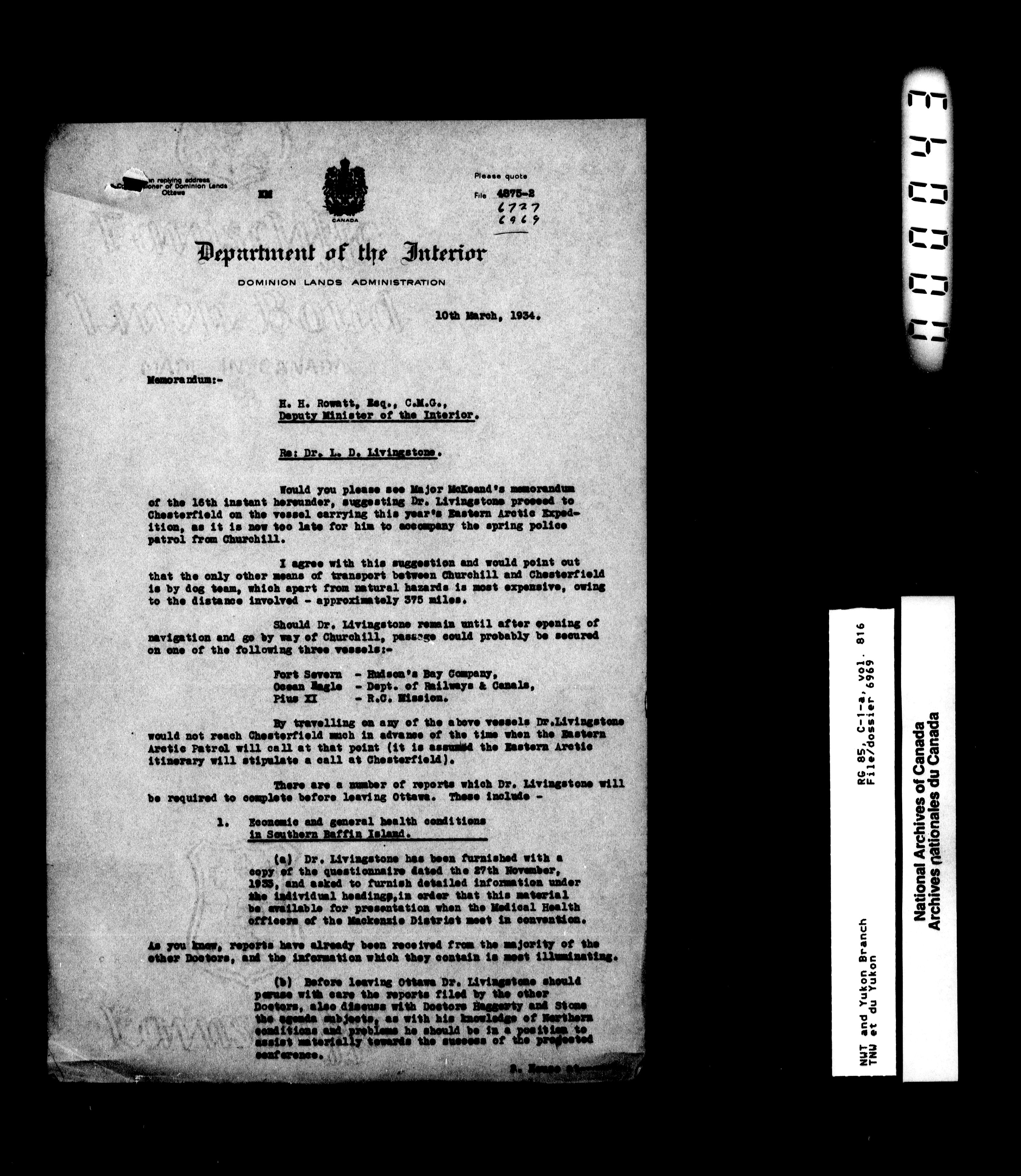 Department of Indian Affairs : Northwest Territories and Yukon Branch : T-13319