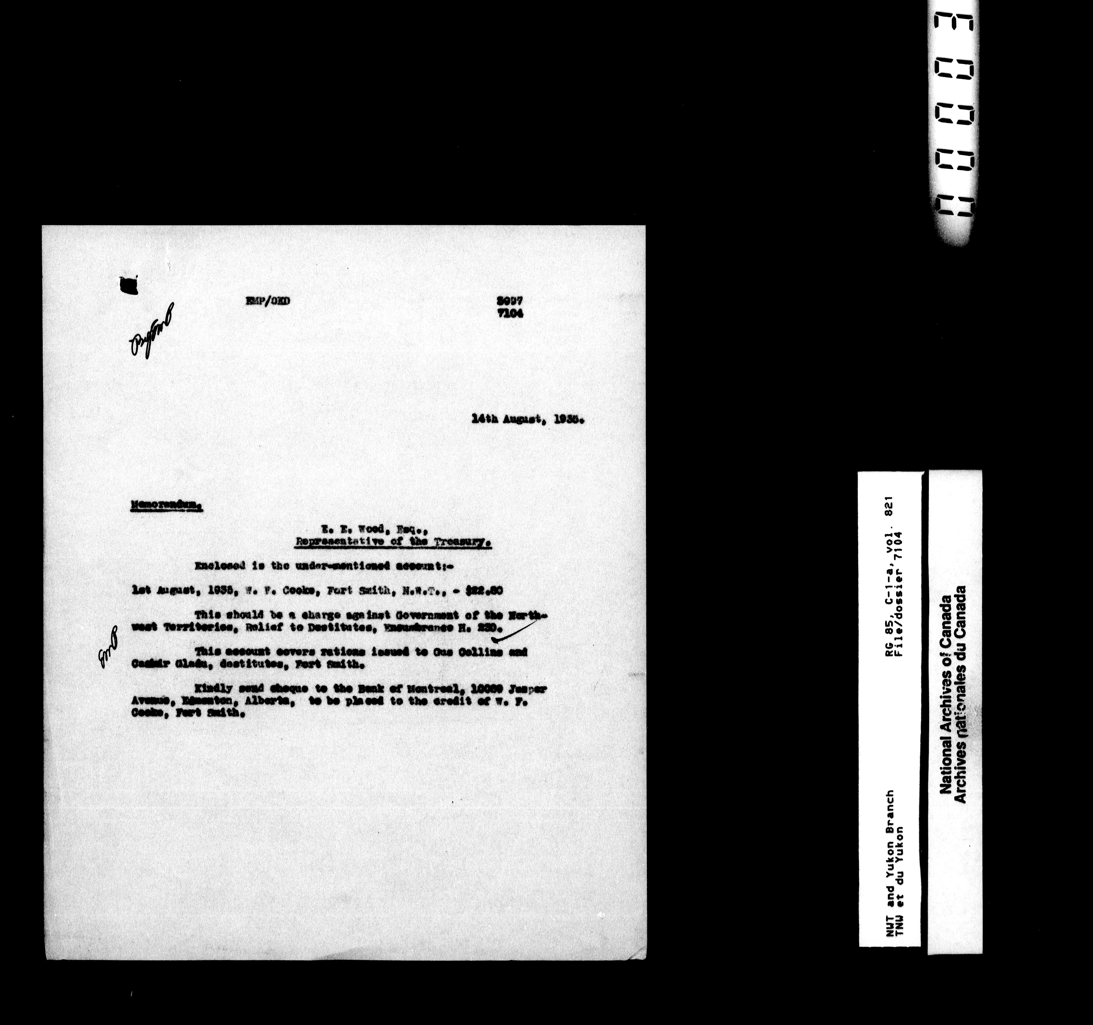 Department of Indian Affairs : Northwest Territories and Yukon Branch, Central Registry files - 13323