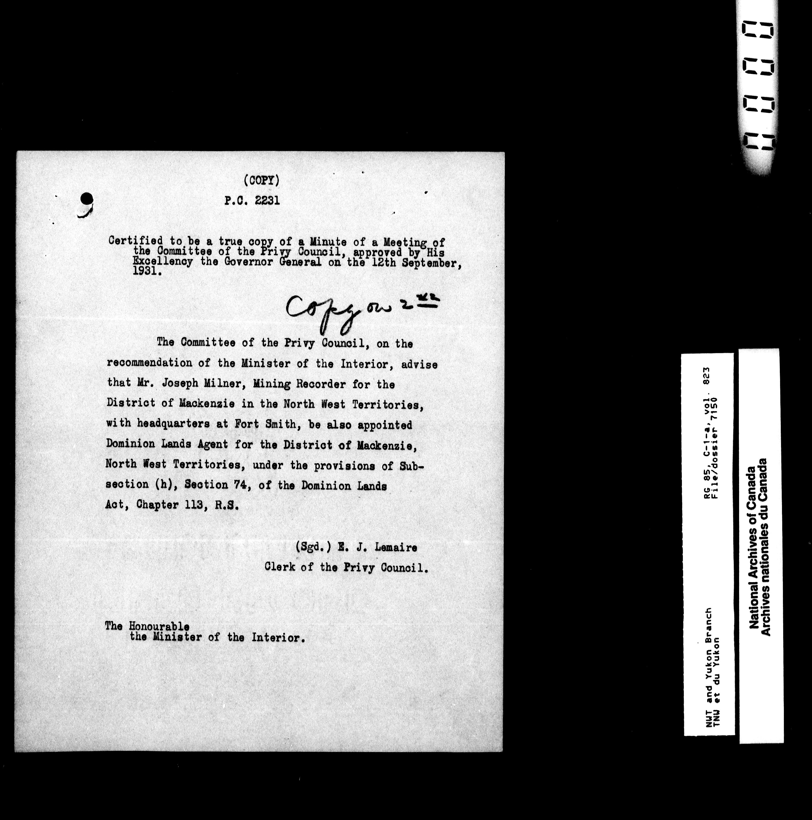 Department of Indian Affairs : Northwest Territories and Yukon Branch, Central Registry files - 13325