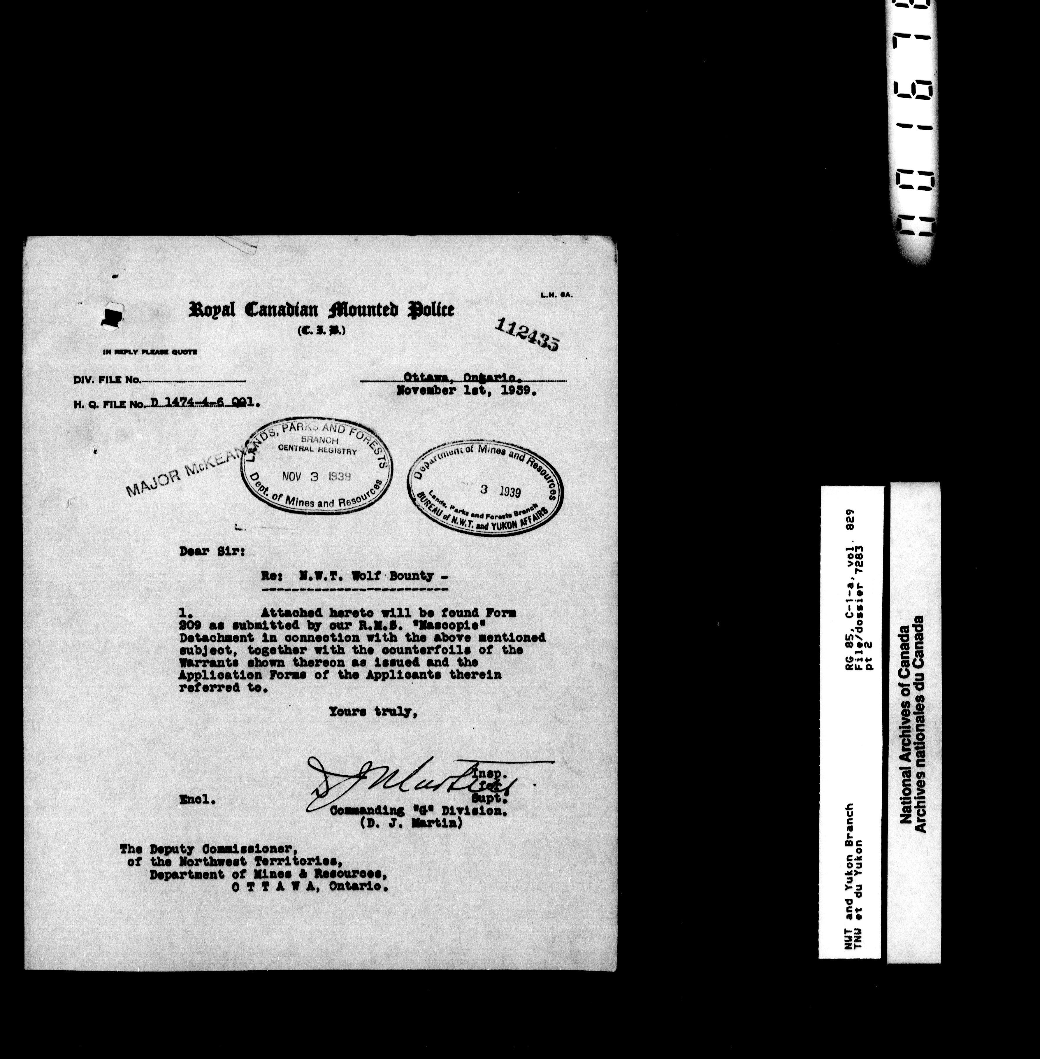 Department of Indian Affairs : Northwest Territories and Yukon Branch, Central Registry files - 13329