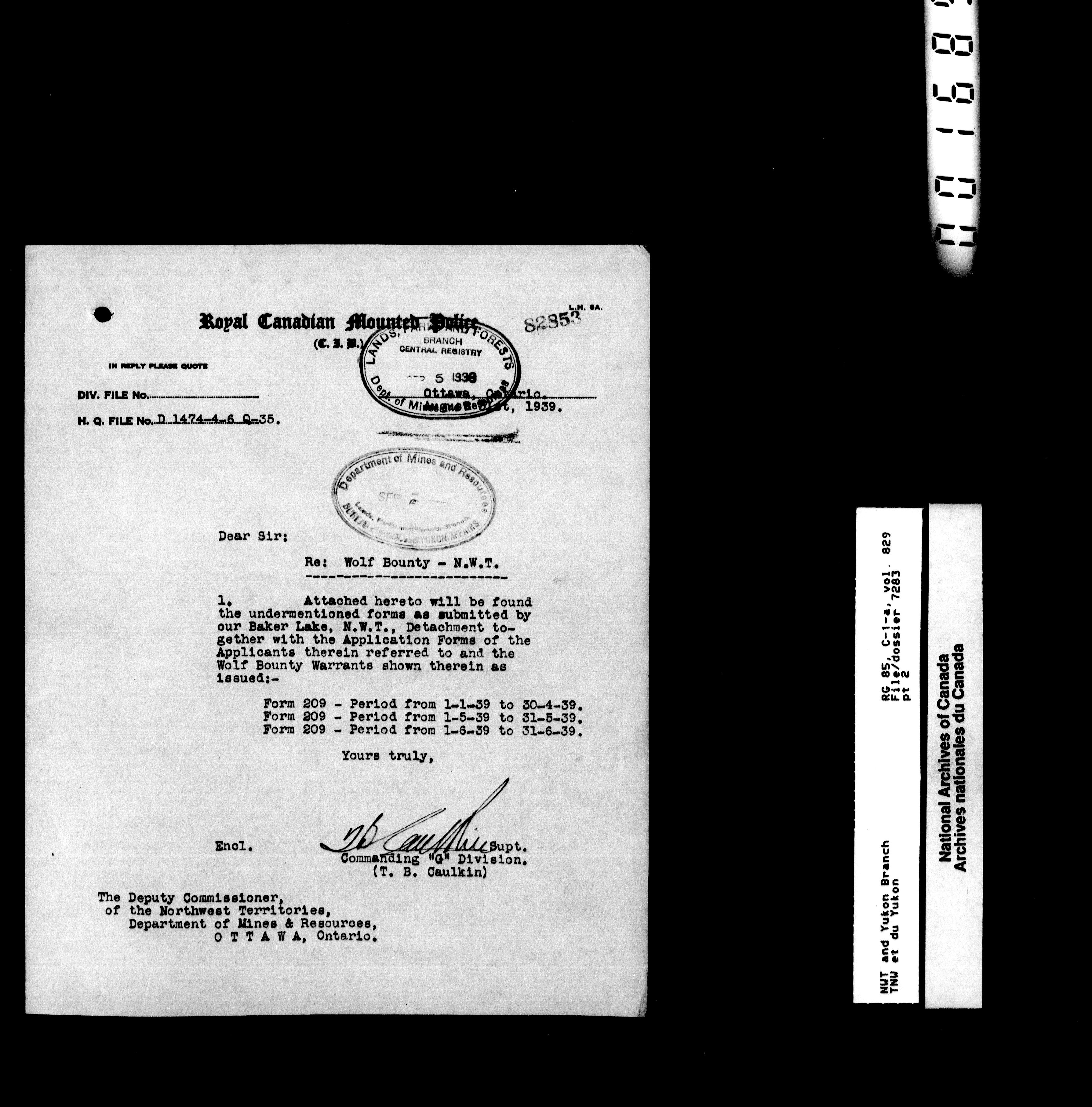 Department of Indian Affairs : Northwest Territories and Yukon Branch, Central Registry files - 13329