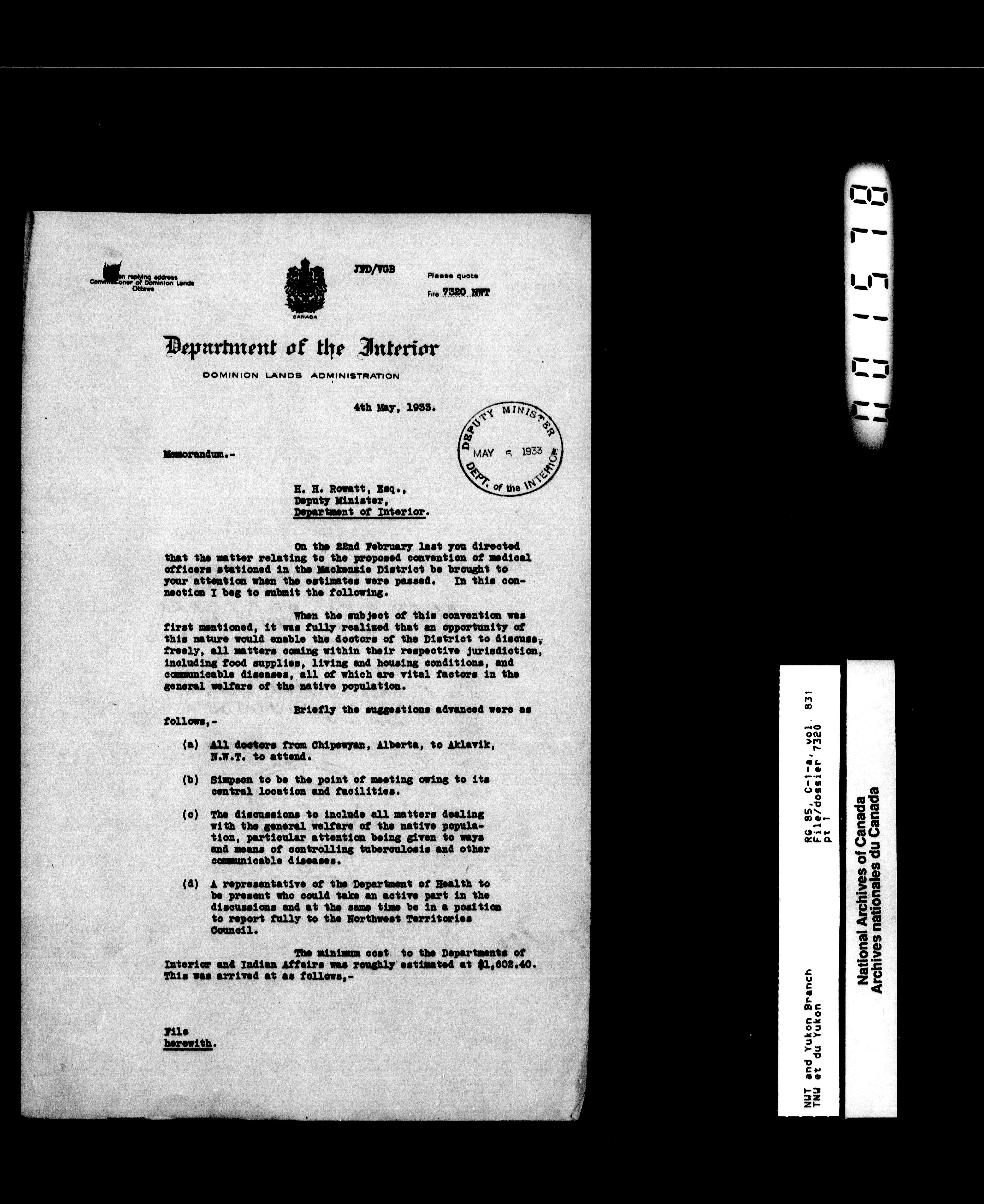 Department of Indian Affairs : Northwest Territories and Yukon Branch : T-13331