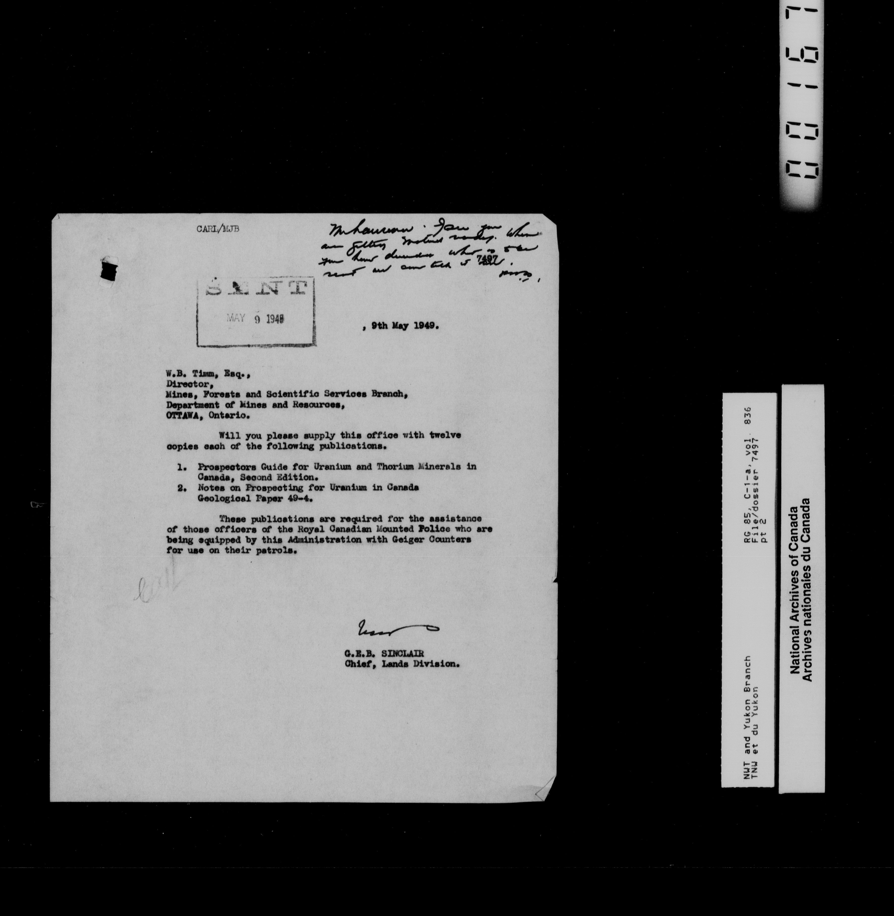 Department of Indian Affairs : Northwest Territories and Yukon Branch, Central Registry files - 13335