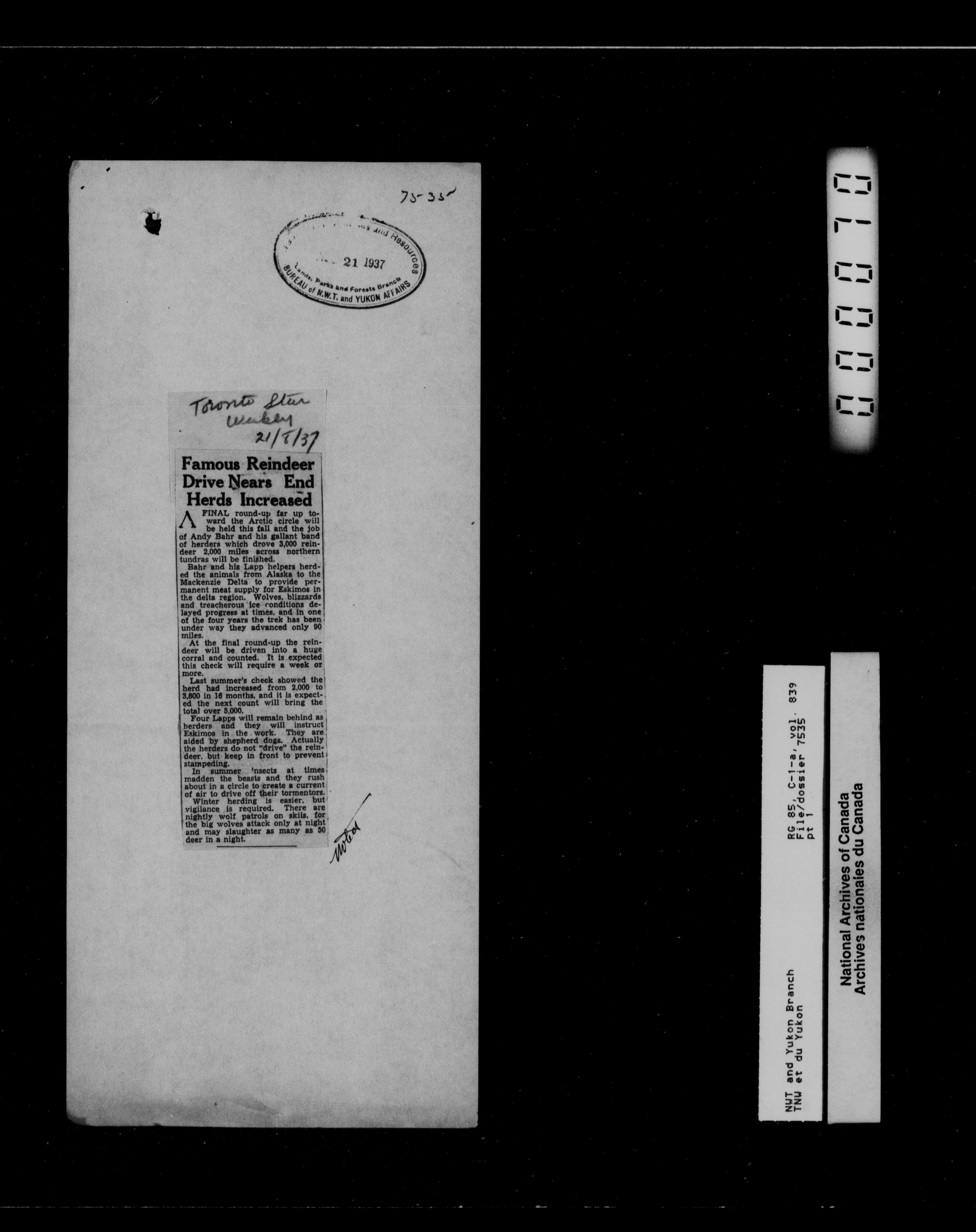 Department of Indian Affairs : Northwest Territories and Yukon Branch : T-13338