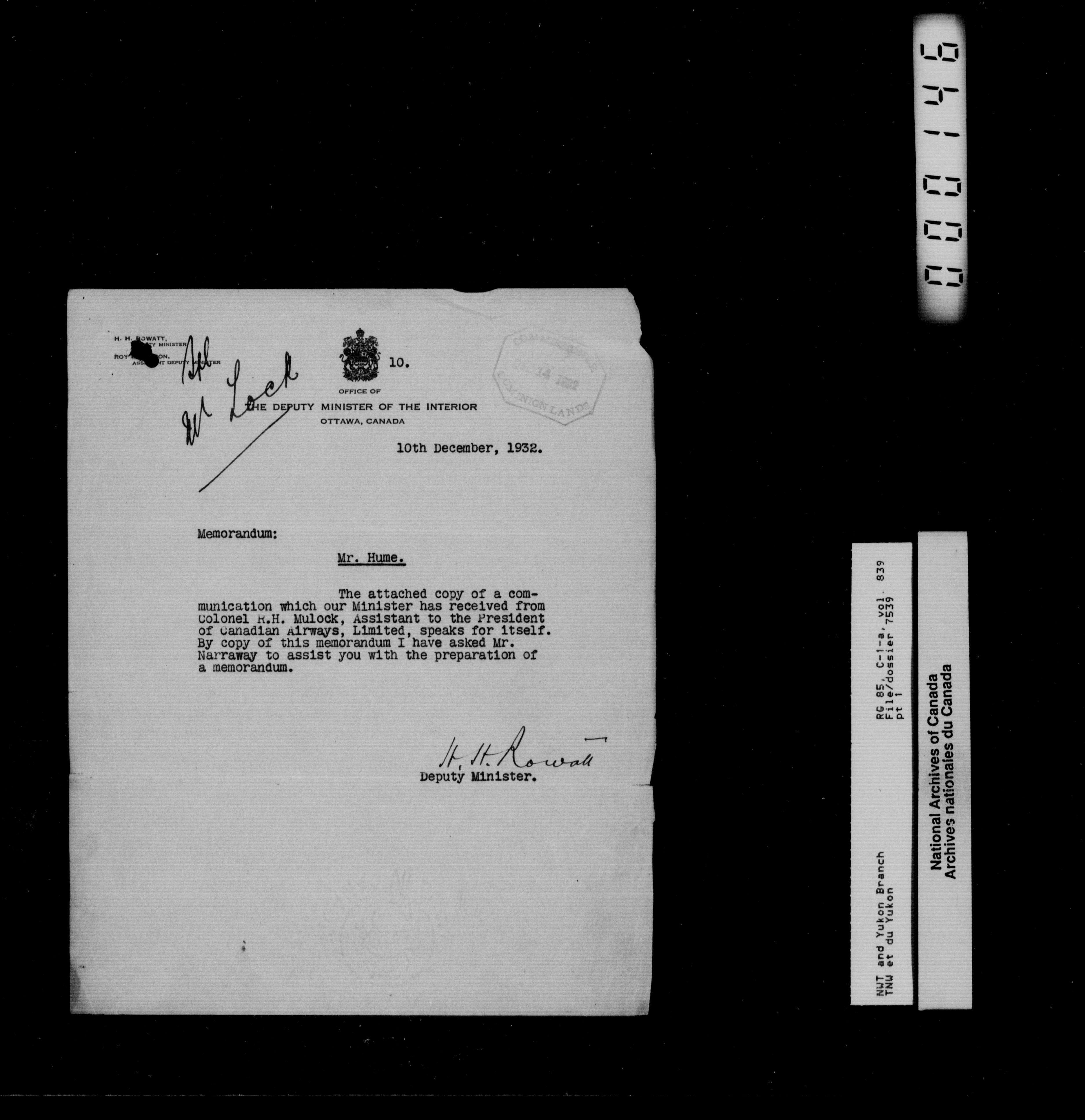 Department of Indian Affairs : Northwest Territories and Yukon Branch, Central Registry files - 13339