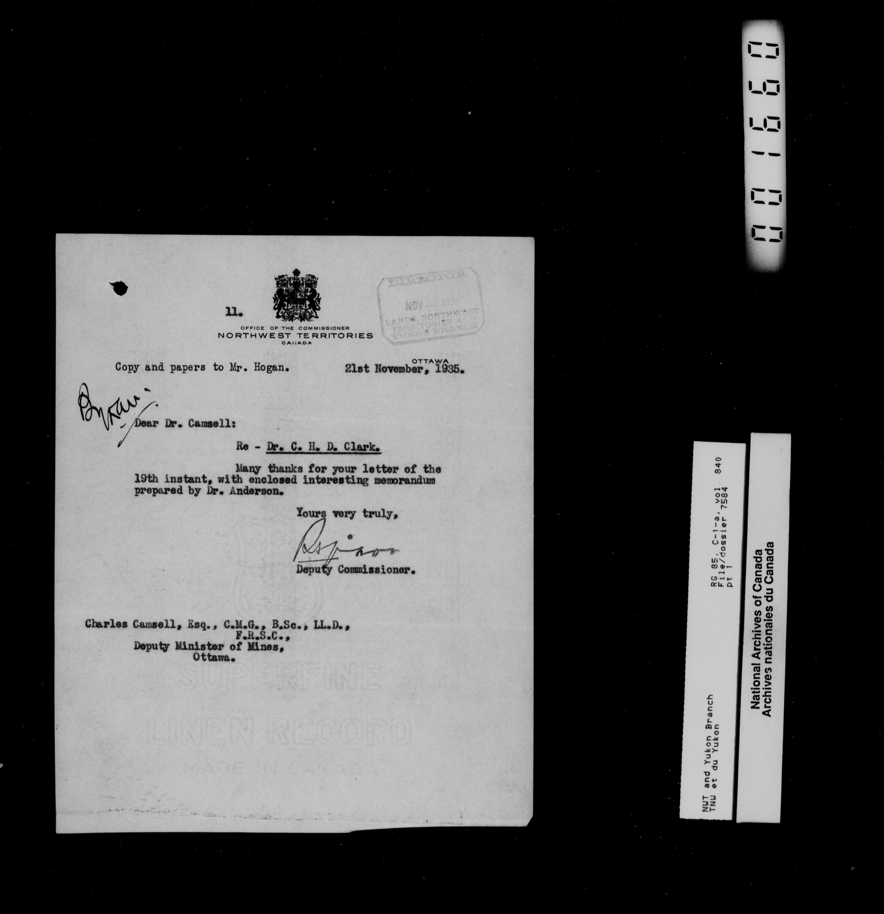 Department of Indian Affairs : Northwest Territories and Yukon Branch, Central Registry files - 13339