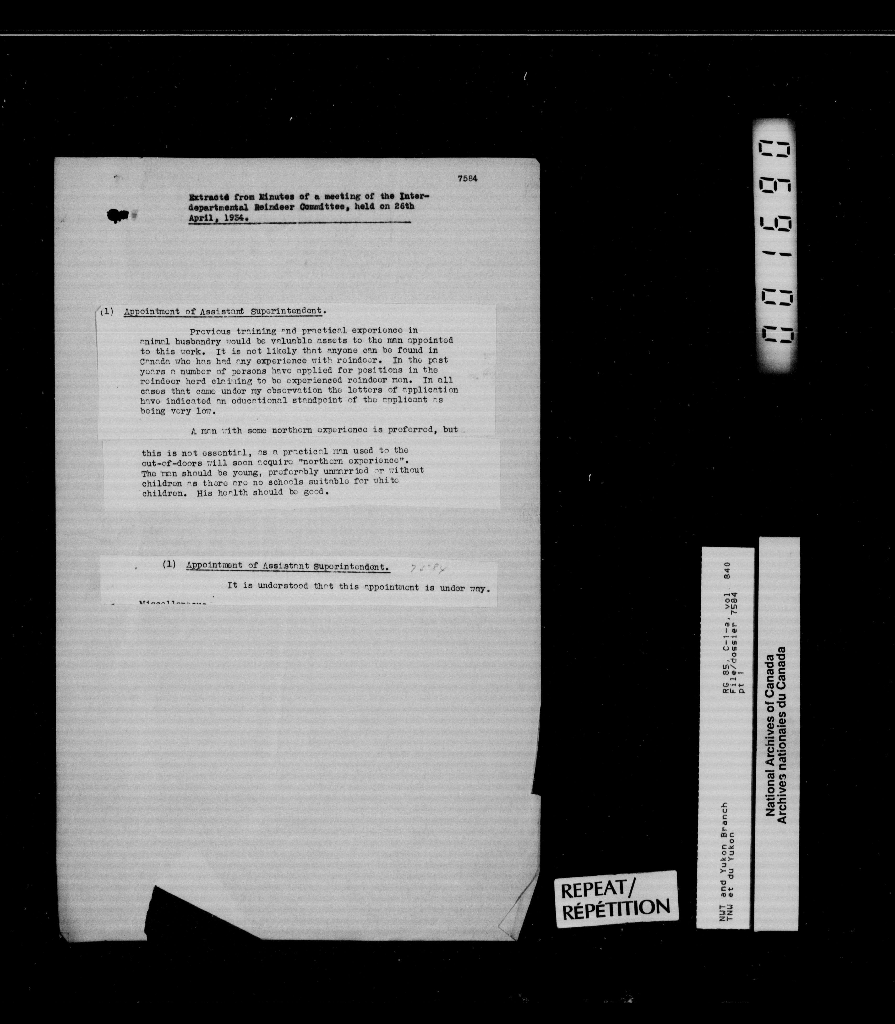Department of Indian Affairs : Northwest Territories and Yukon Branch, Central Registry files - 13339