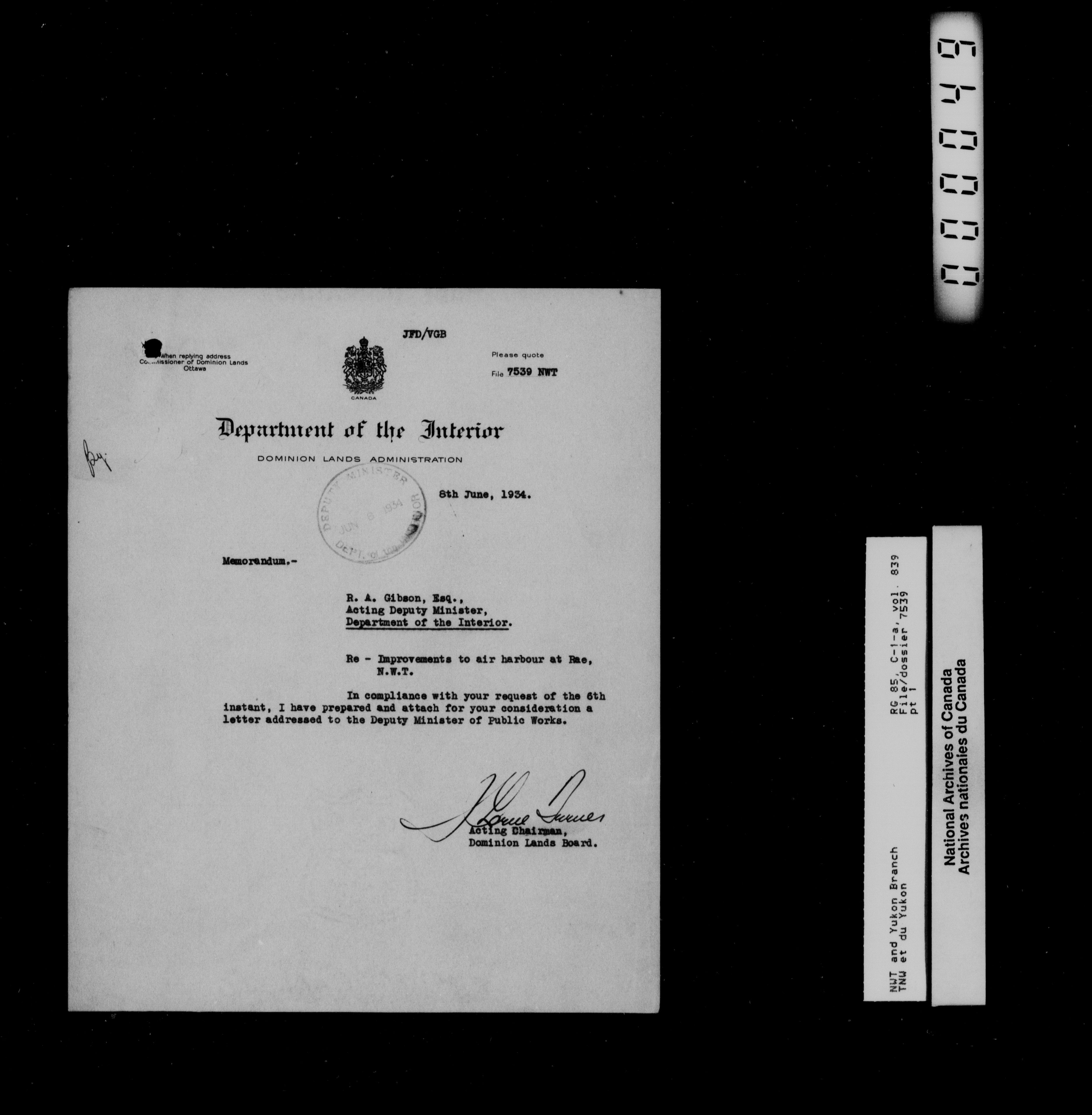 Department of Indian Affairs : Northwest Territories and Yukon Branch, Central Registry files - 13339