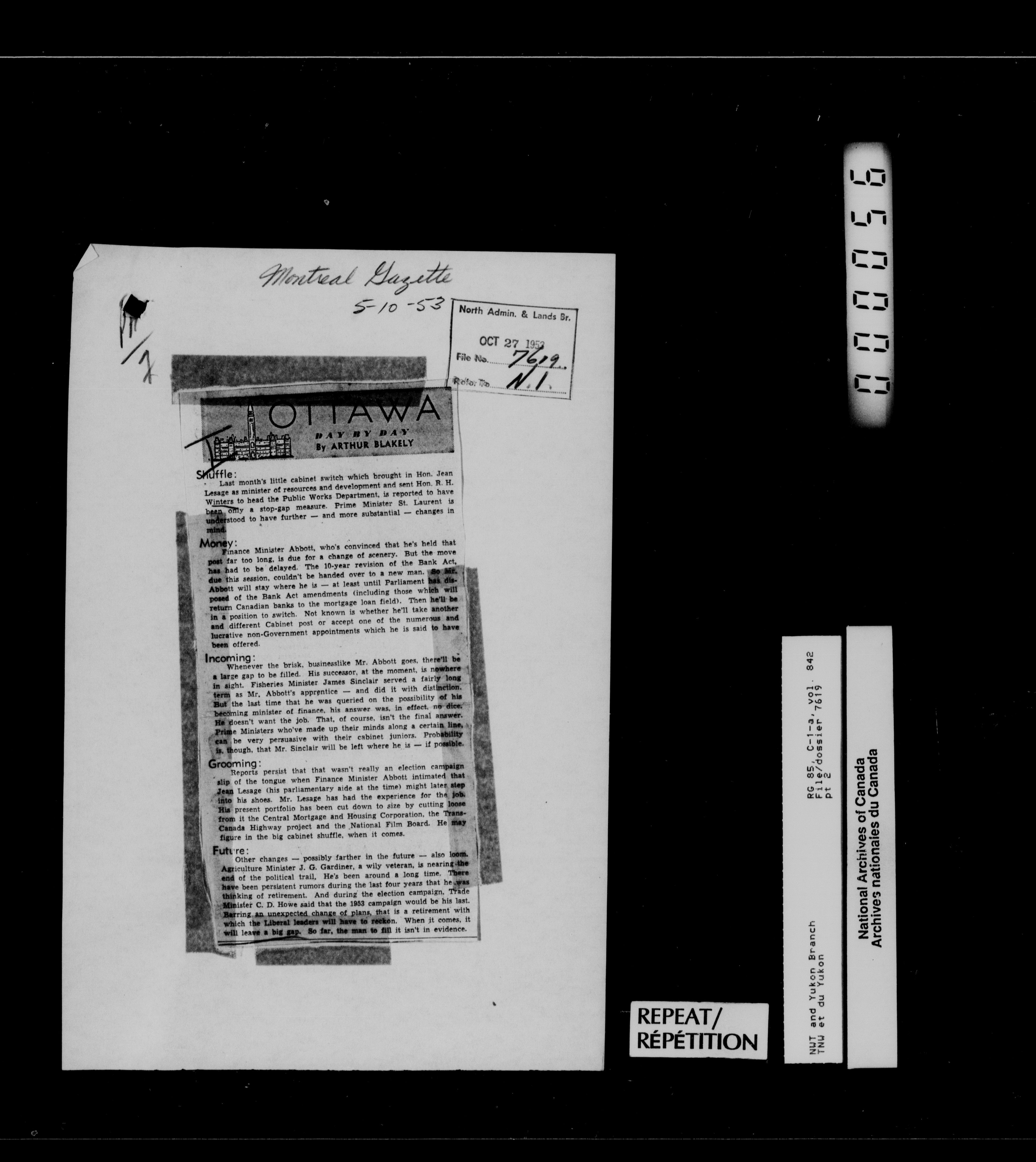 Department of Indian Affairs : Northwest Territories and Yukon Branch, Central Registry files - 13342