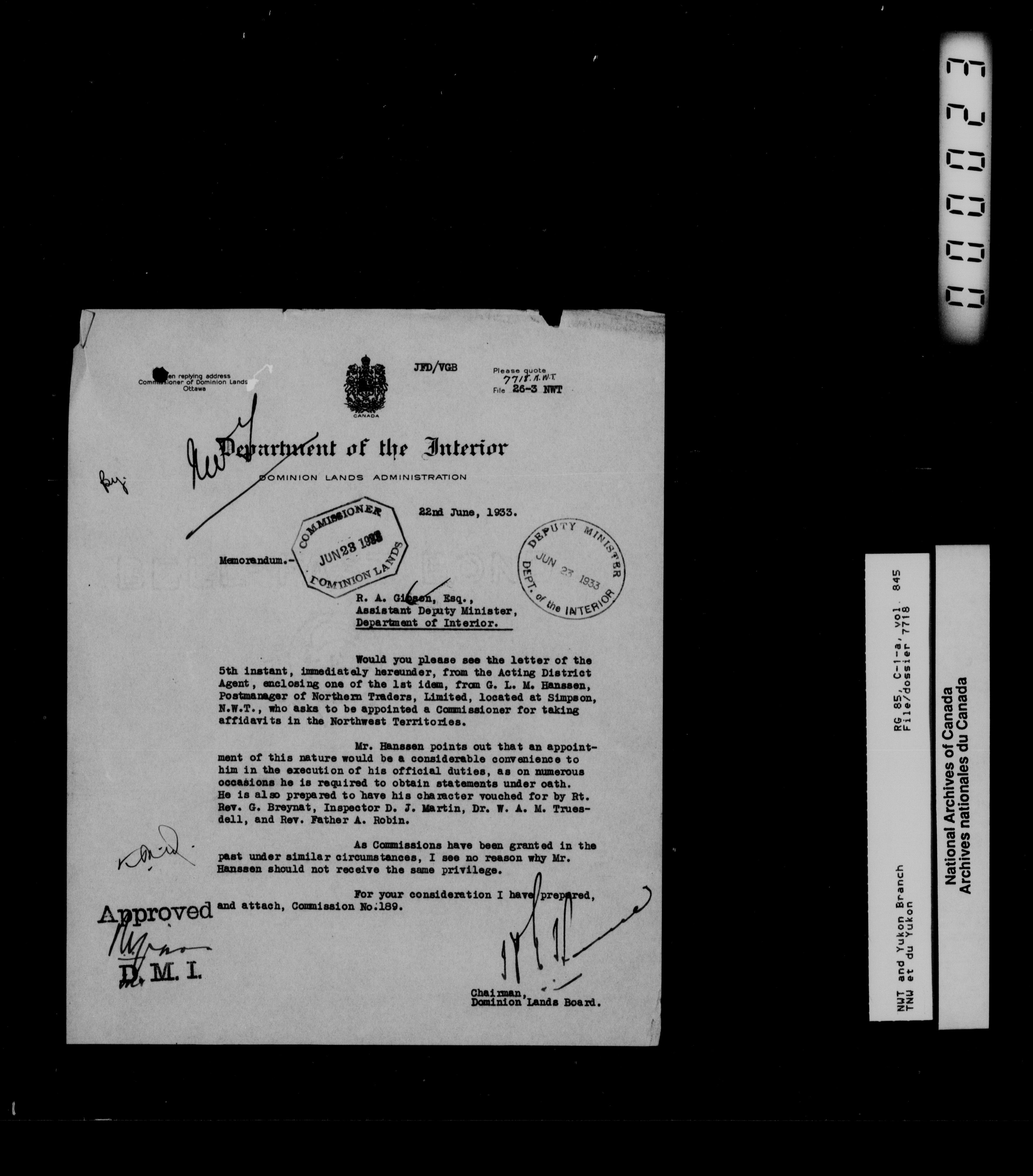 Department of Indian Affairs : Northwest Territories and Yukon Branch, Central Registry files - 13344