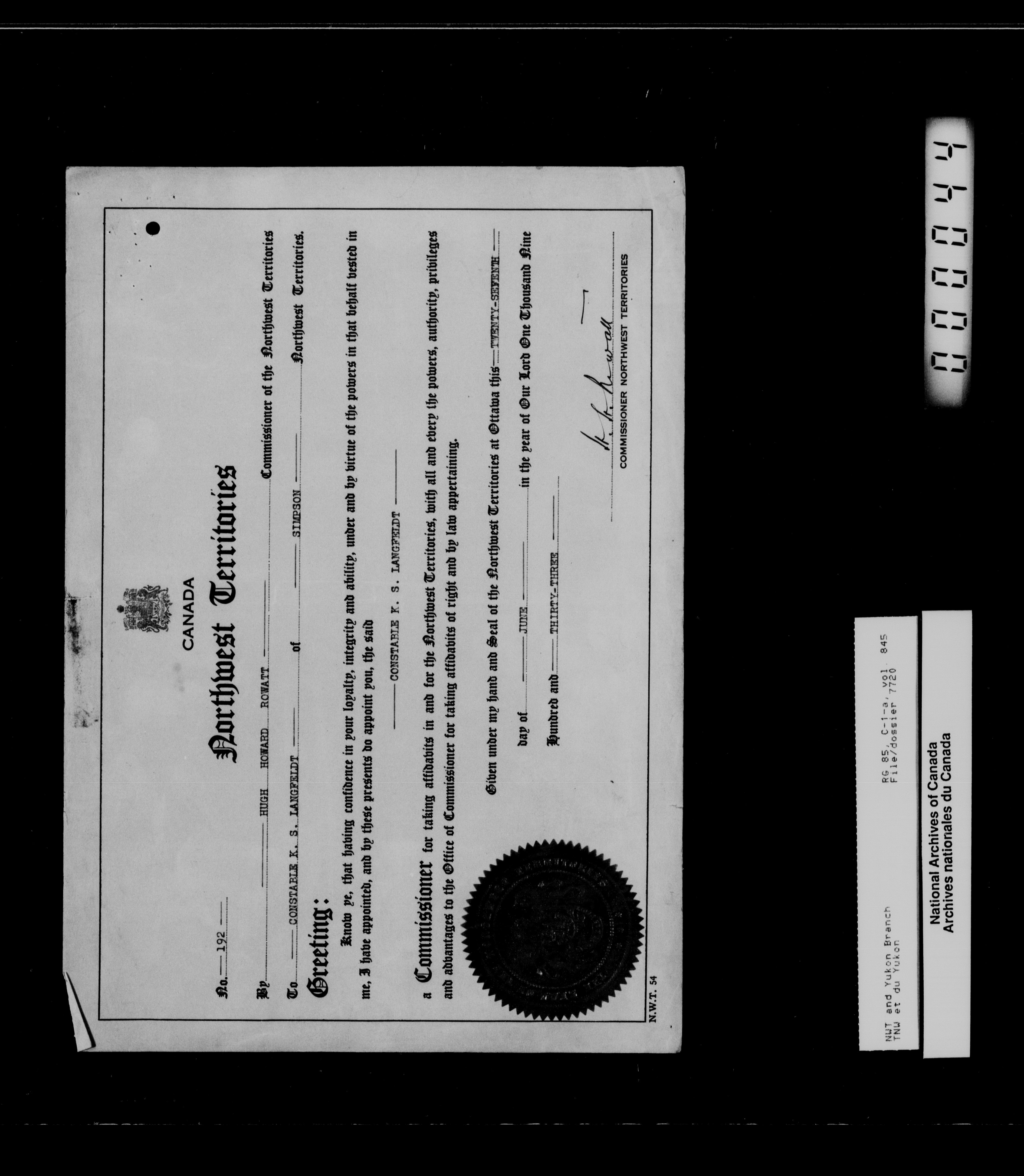 Department of Indian Affairs : Northwest Territories and Yukon Branch : T-13344