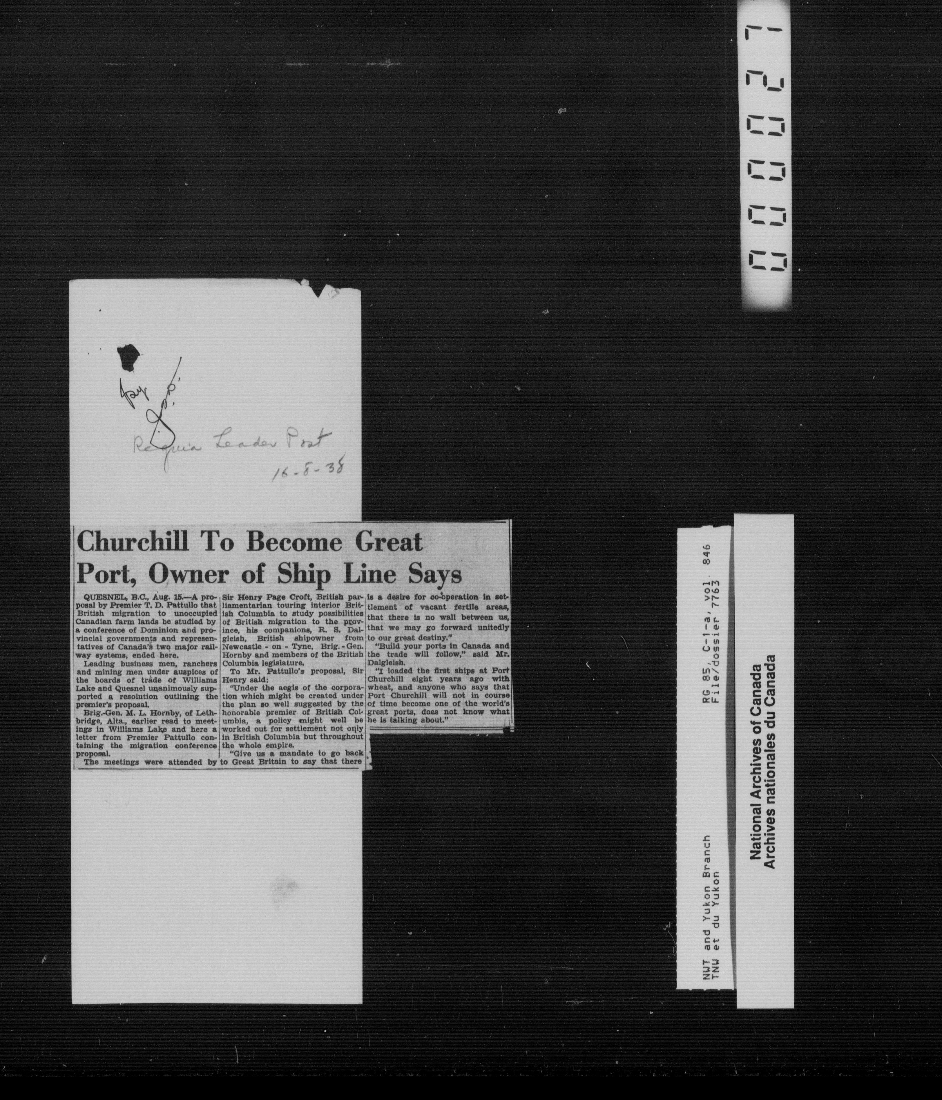 Department of Indian Affairs : Northwest Territories and Yukon Branch, Central Registry files - 13346