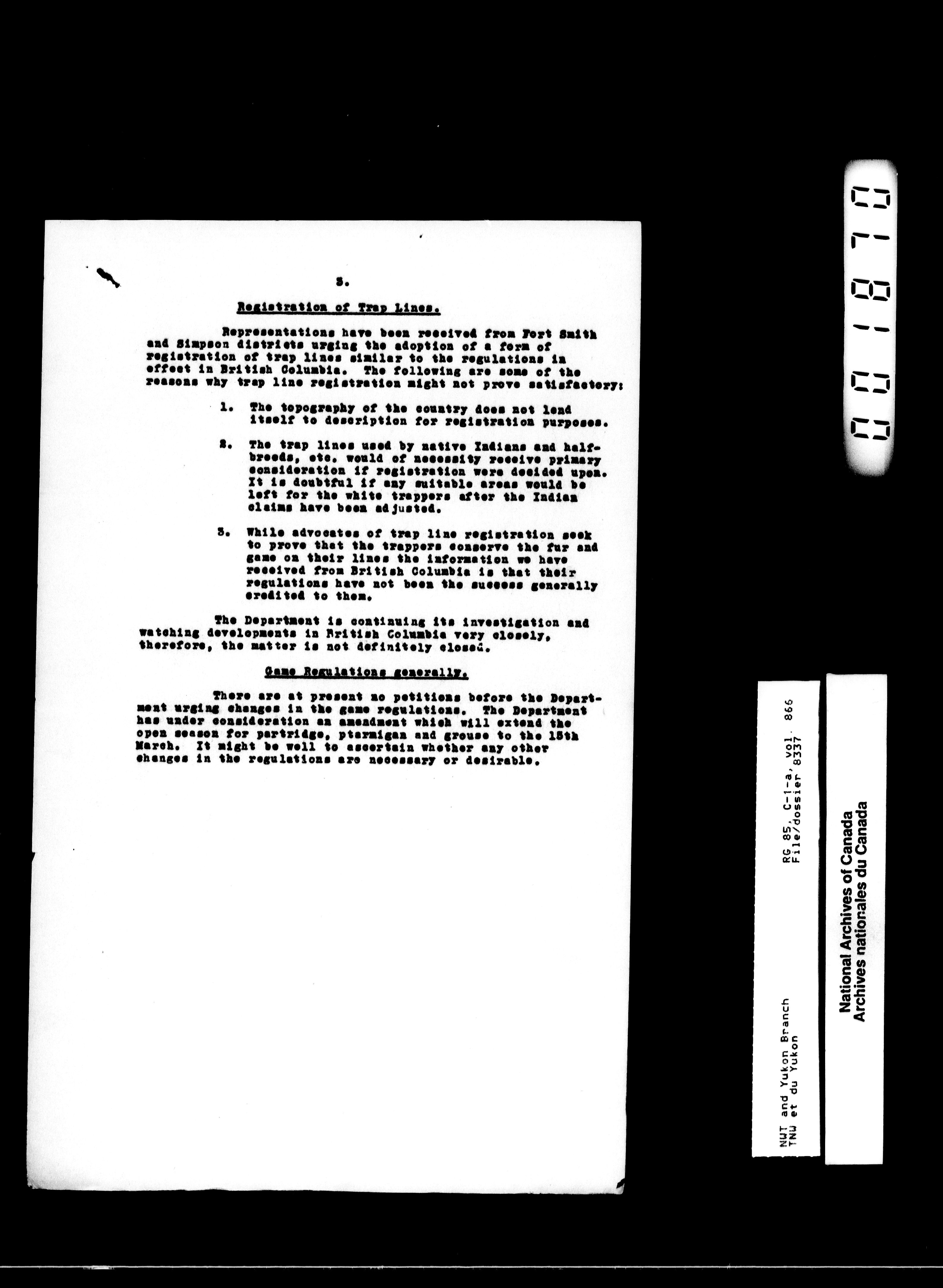 Department of Indian Affairs : Northwest Territories and Yukon Branch, Central Registry files - 13359